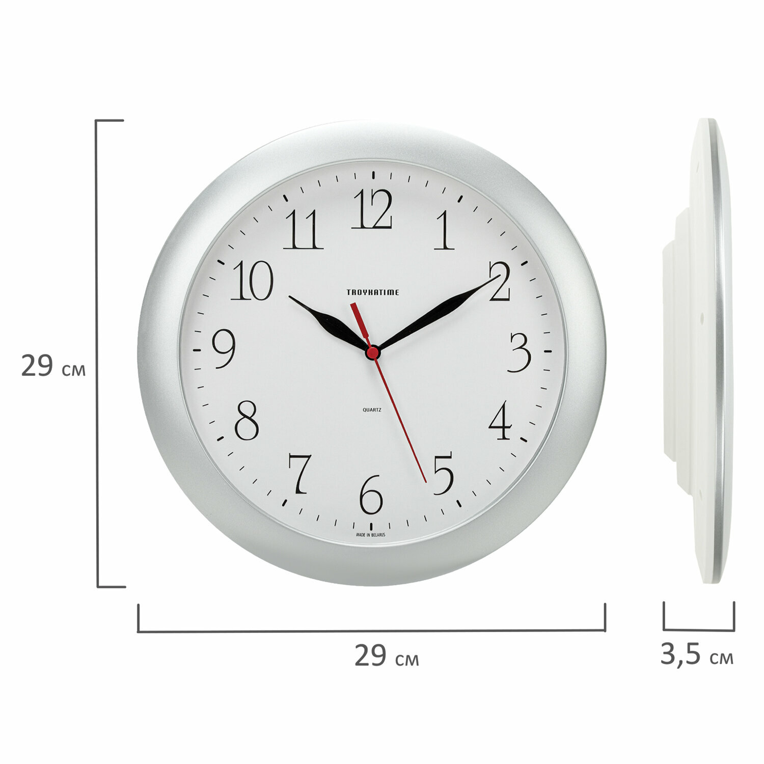 Комплект 5 шт, Часы настенные TROYKA 11170113, круг, белые, серебристая рамка, 29х29х3.5 см