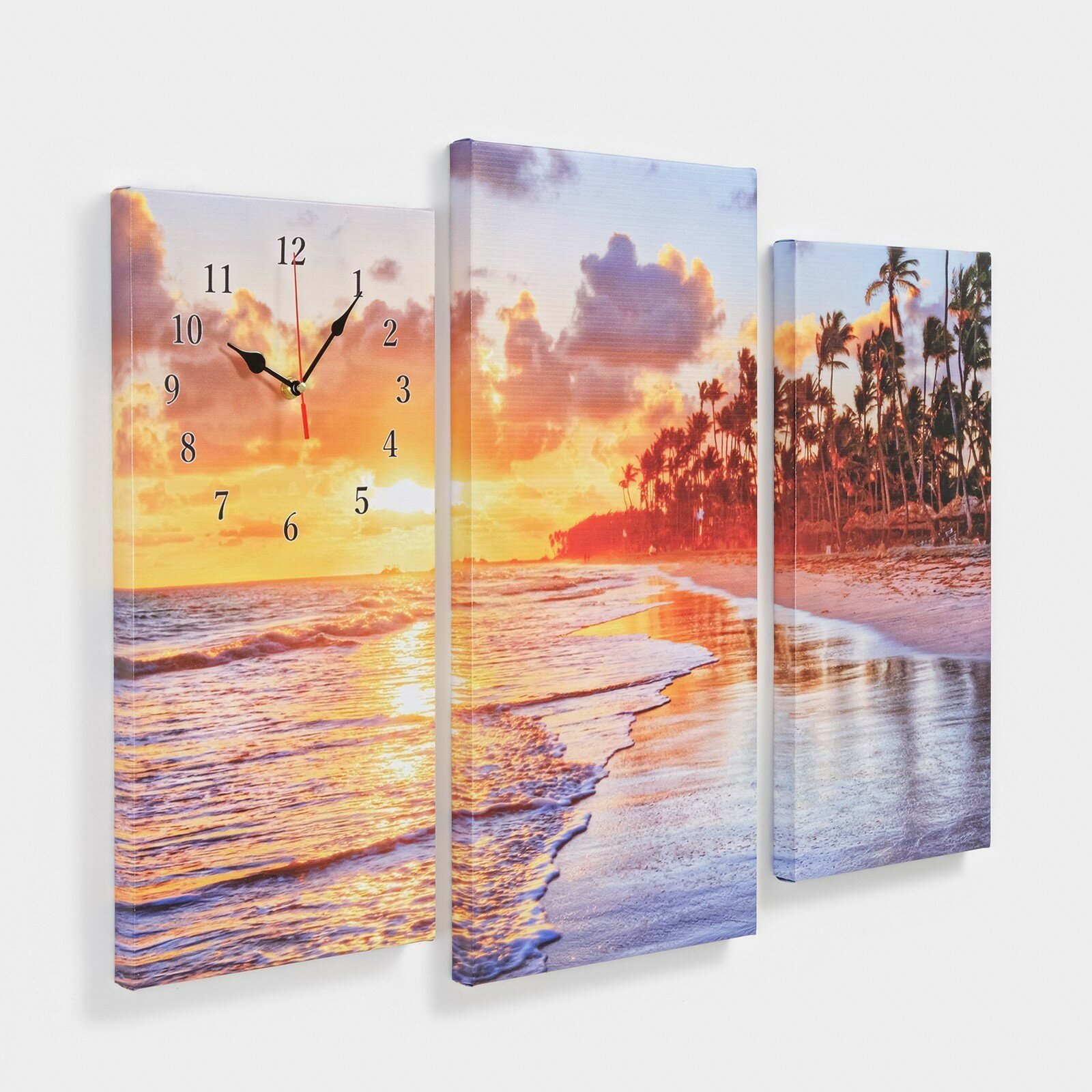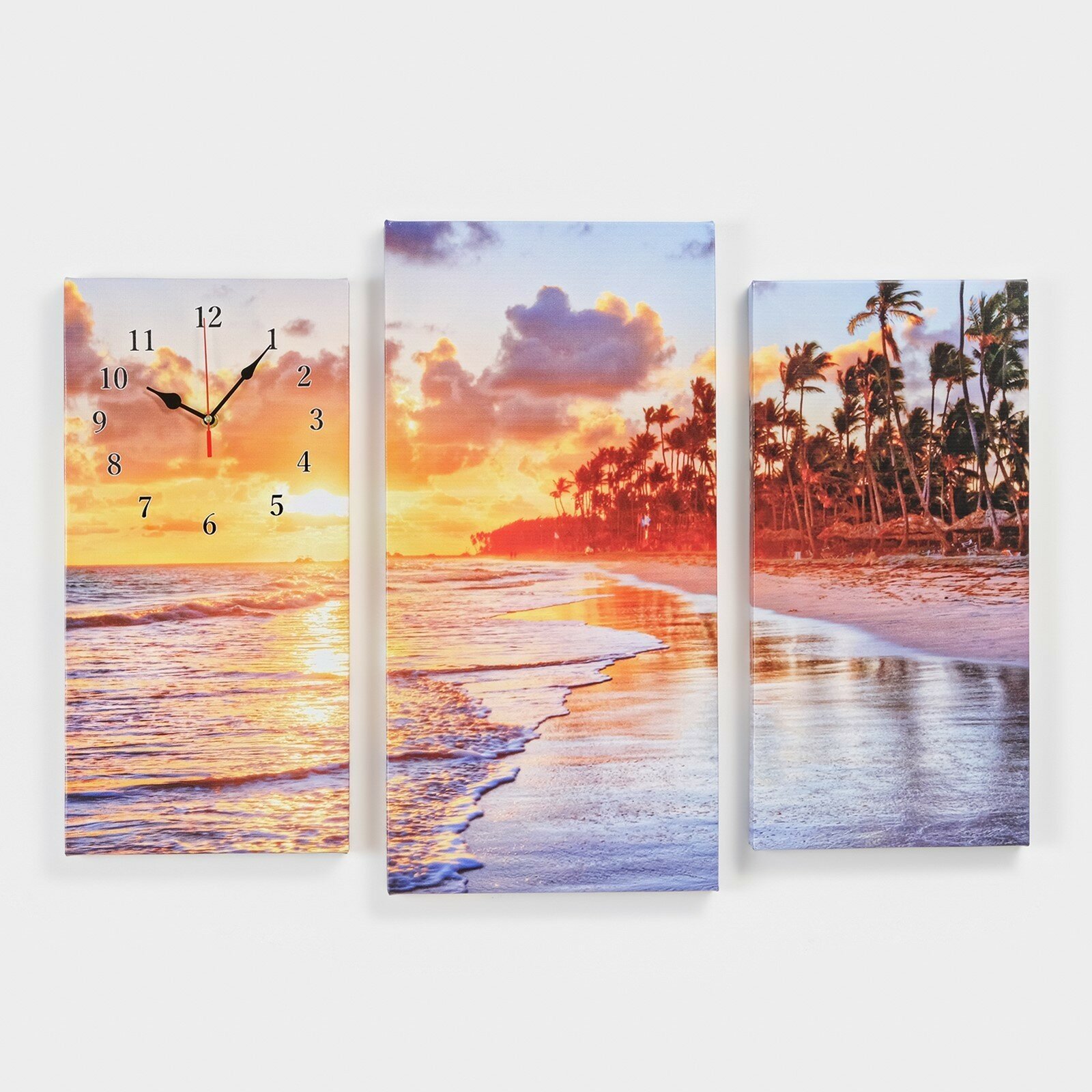 Часы-картина настенные, модульные "Пальмы на закате", 60х80 см (комплект из 2 шт)