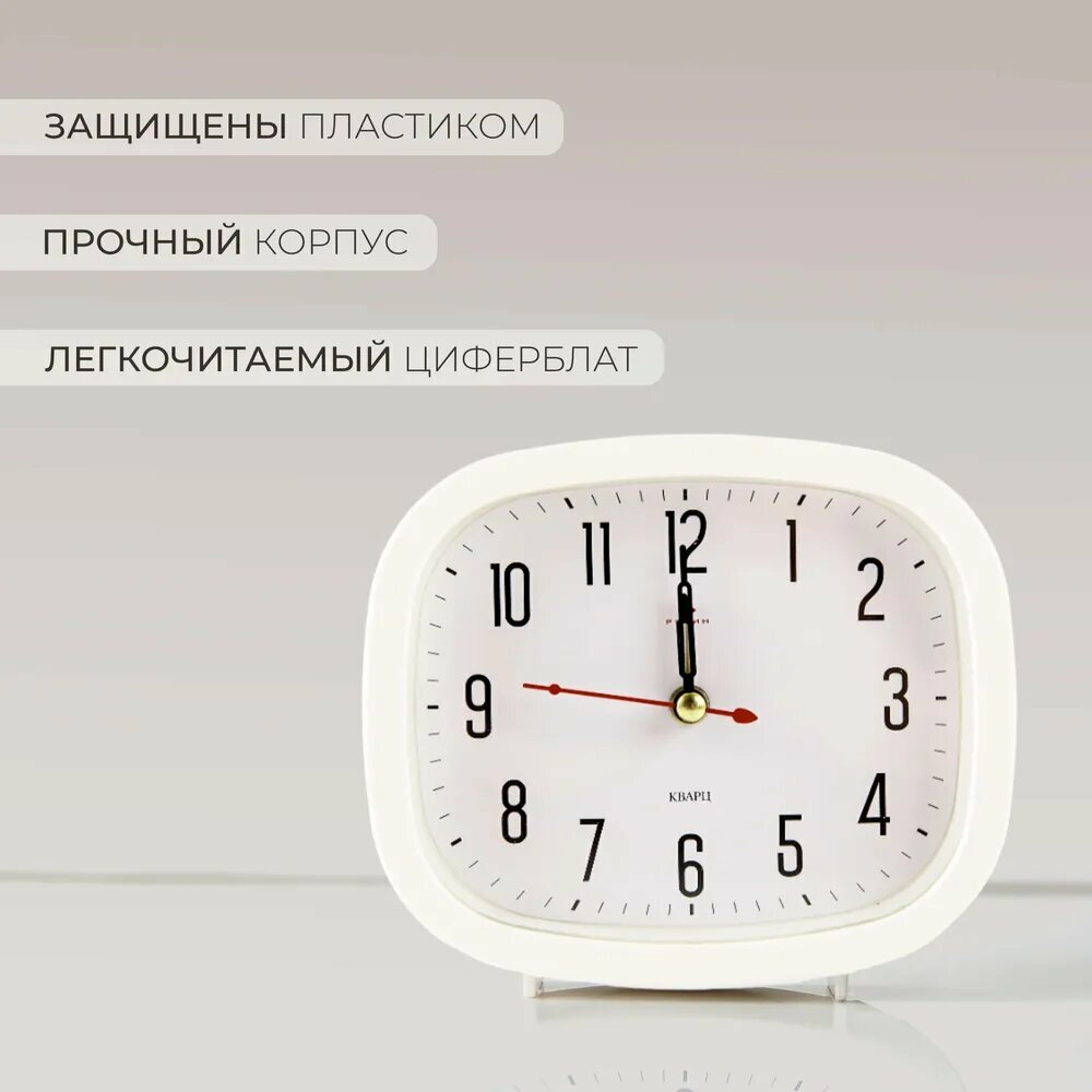 Часы будильник овальный настольный на батарейках, часы Рубин, Бежевый + Белый/Часы настольные будильник кварцевый