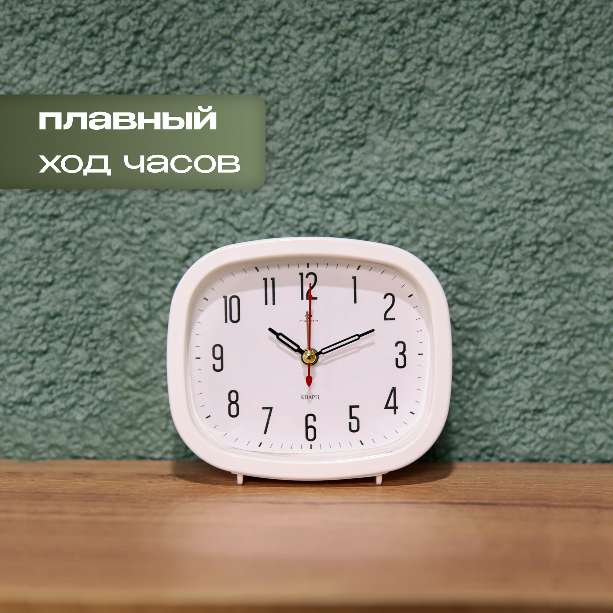 Будильник настольный Рубин Классика для спальни с арабскими цифрами, от пальчиковой батарейки АА, ширина 12.5 см высота 10.5 см