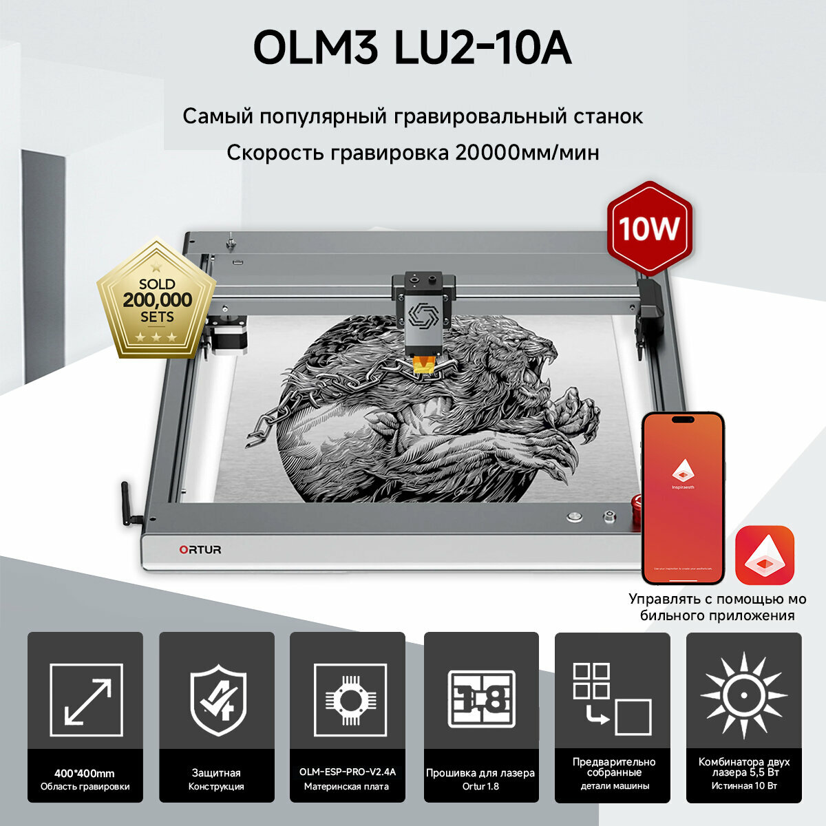 Лазерный гравер по металлу ORTUR Laser Master3 LU2-10A , 20000 мм/мин интересное: