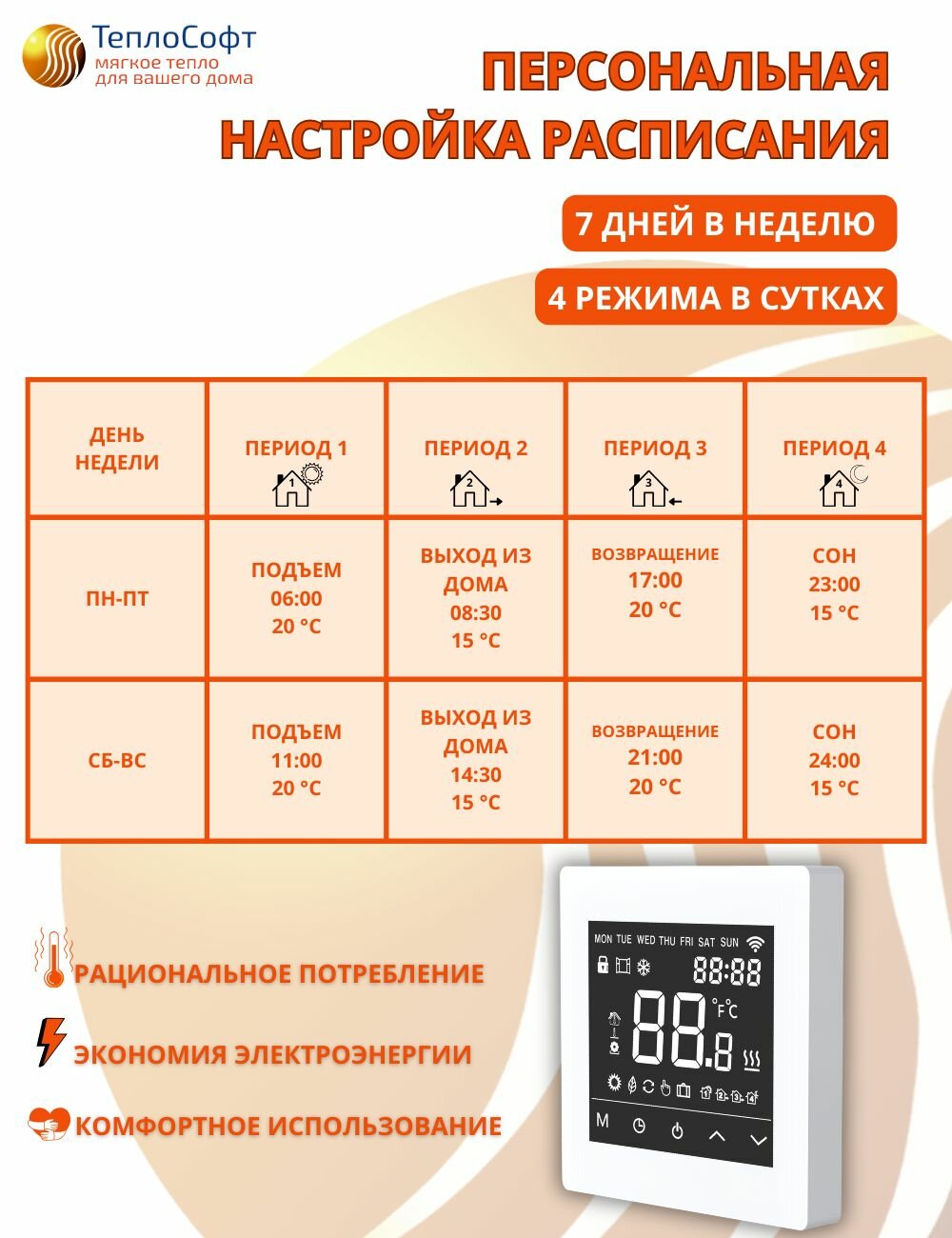 | Дополнительная информация | подходит для управления всеми видами электрических теплых полов и электрическими обогревателями |