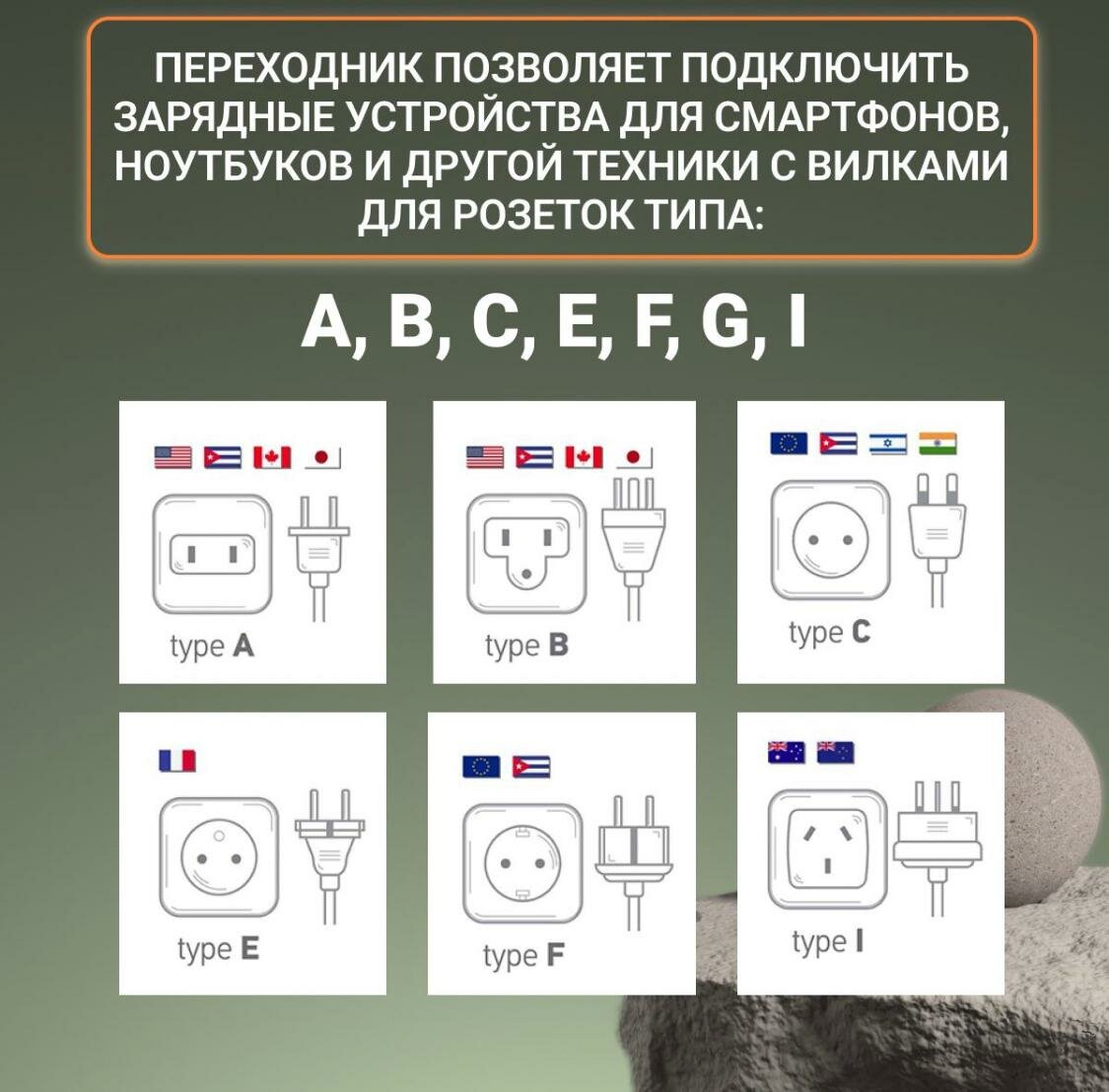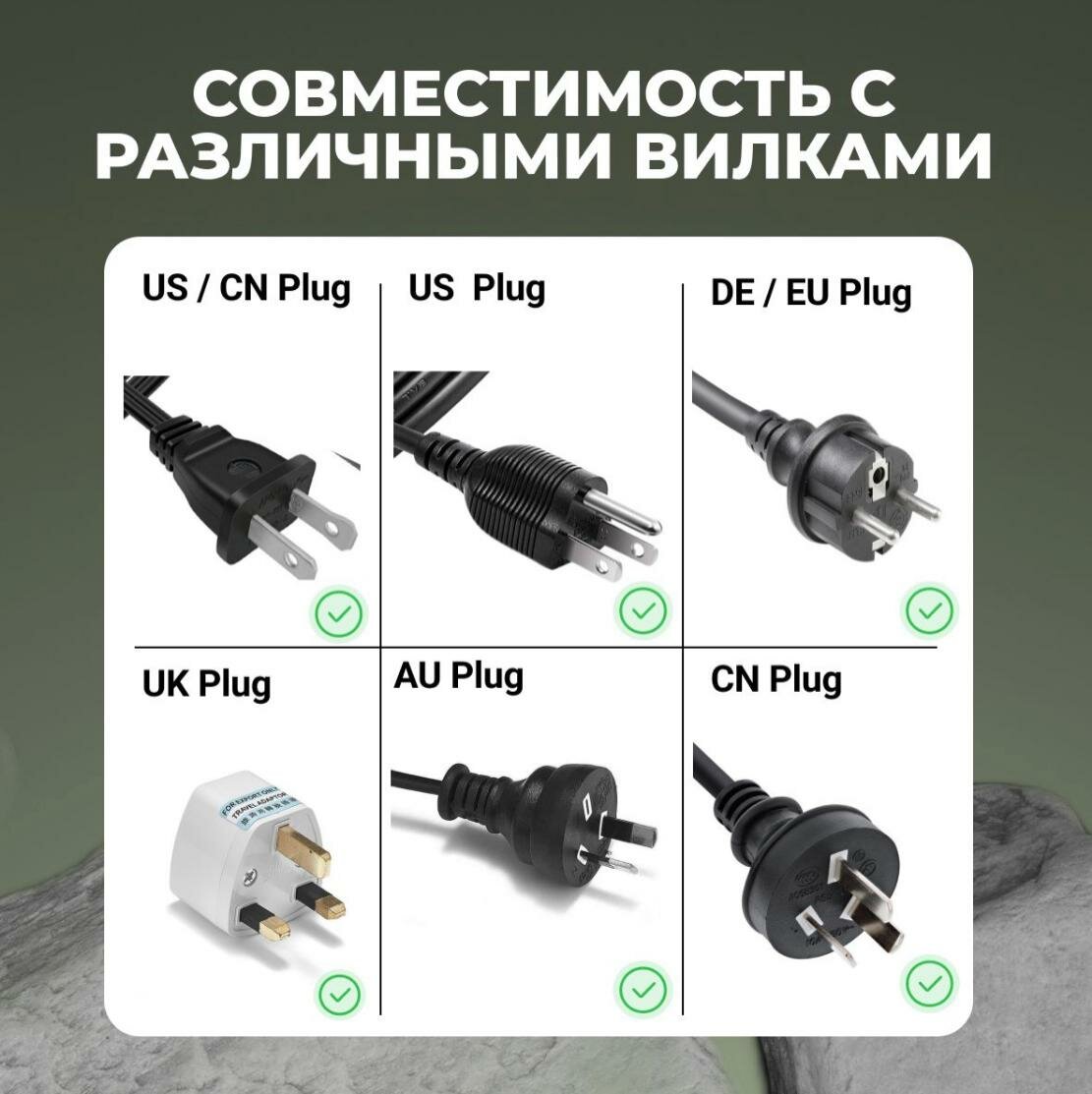 | Дополнительная информация | типы входной вилки: A, B, C, E, F, G, I; типы розеток: тип F (евророзетка); рабочая частота: 50 Гц; материал корпуса: ABS пластик |