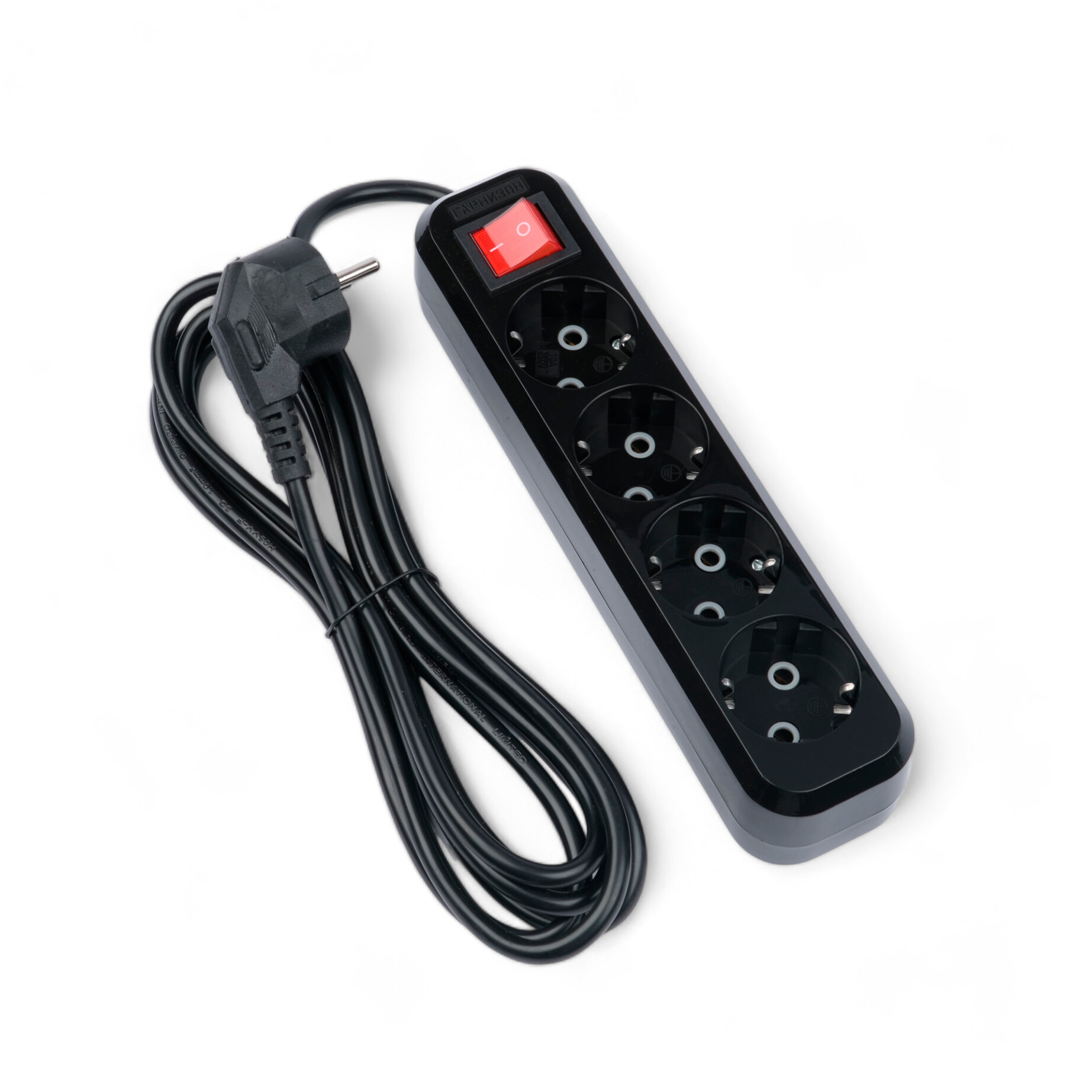 Удлинитель Гарнизон черный 10А 5м с выключателем и заземлением 1 уровень защиты EPB-G4-B-5