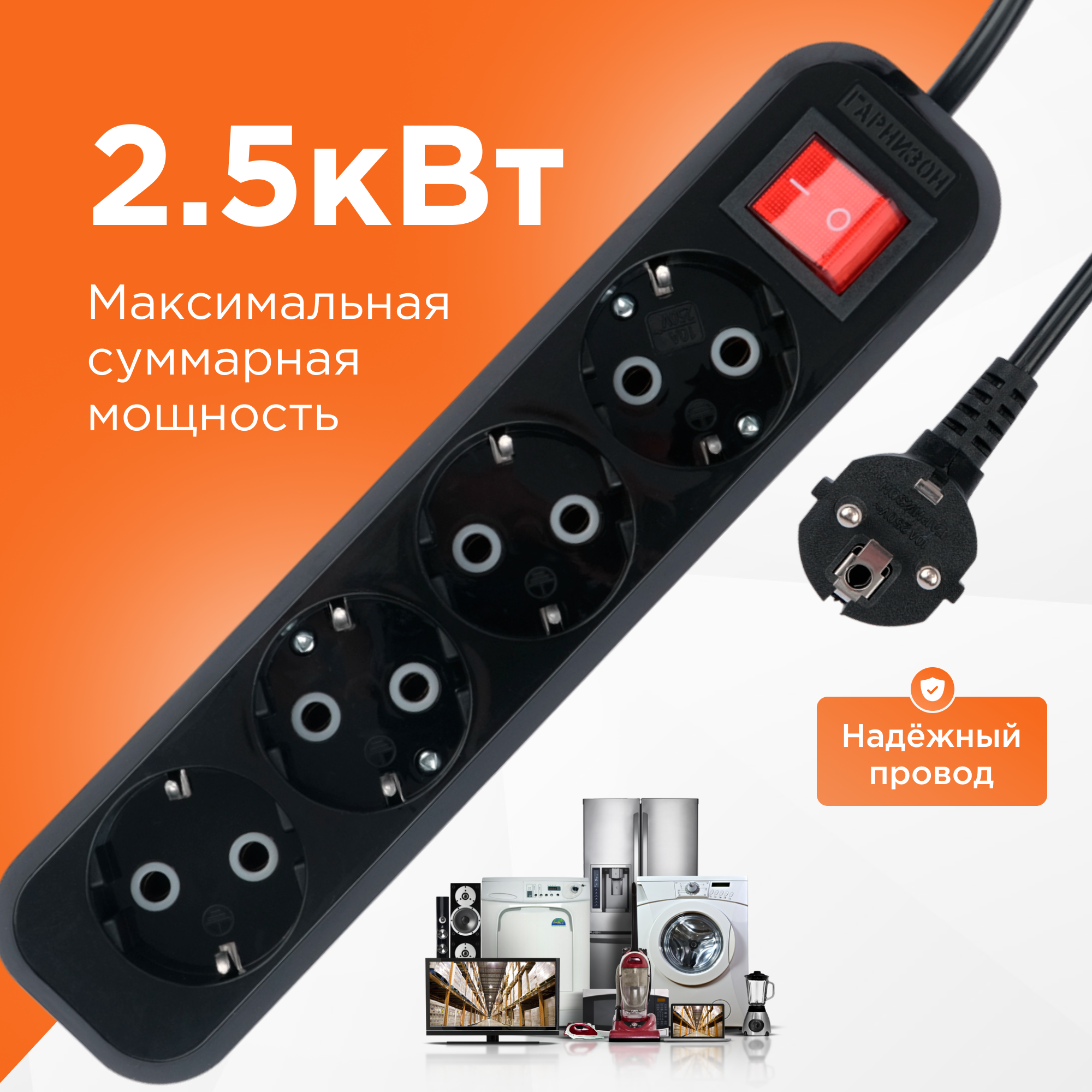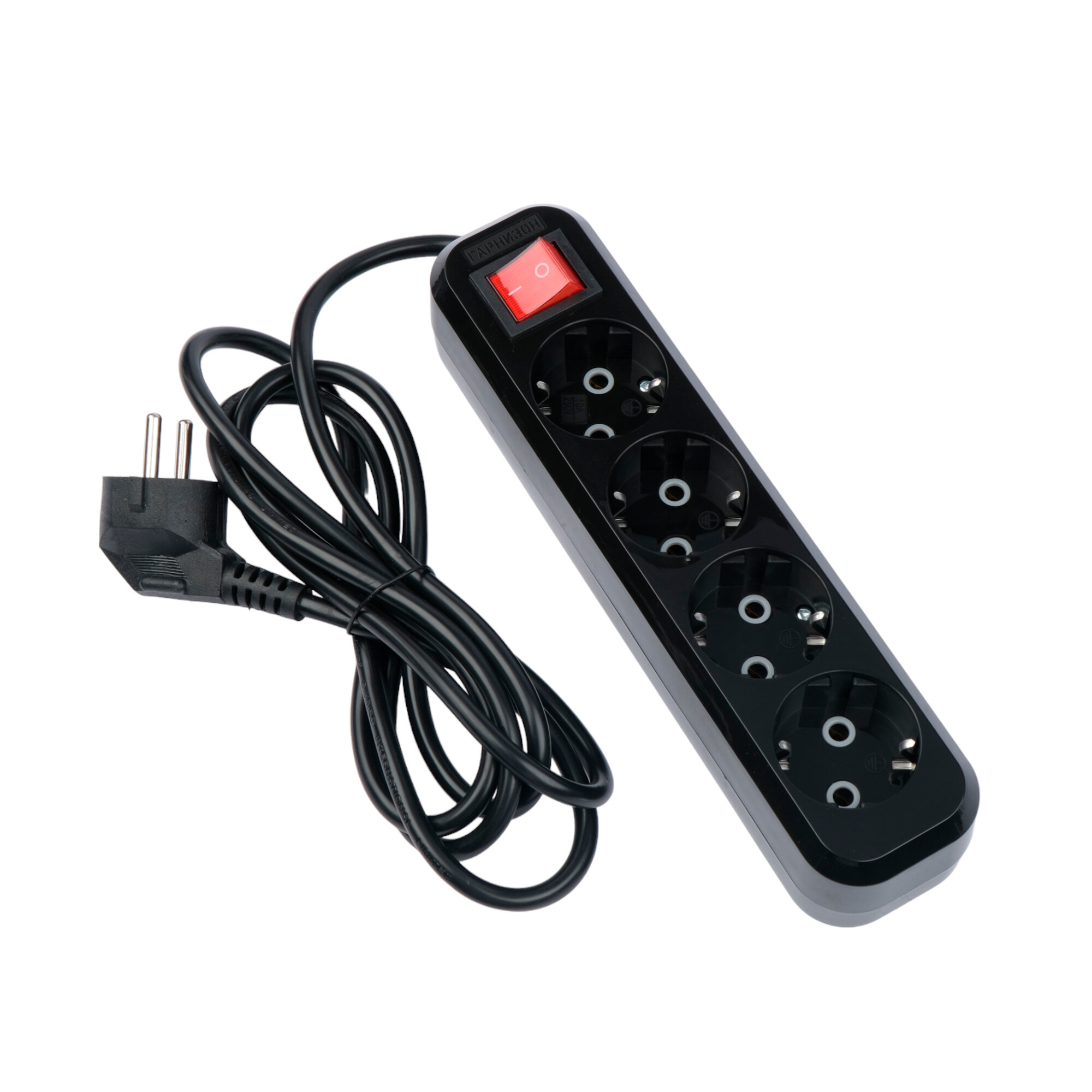 Купить Удлинитель Гарнизон черный 10А 2м с выключателем и заземлением 1 уровень защиты EPB-G4-B-2