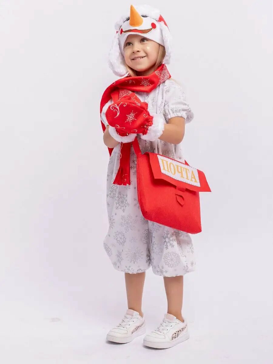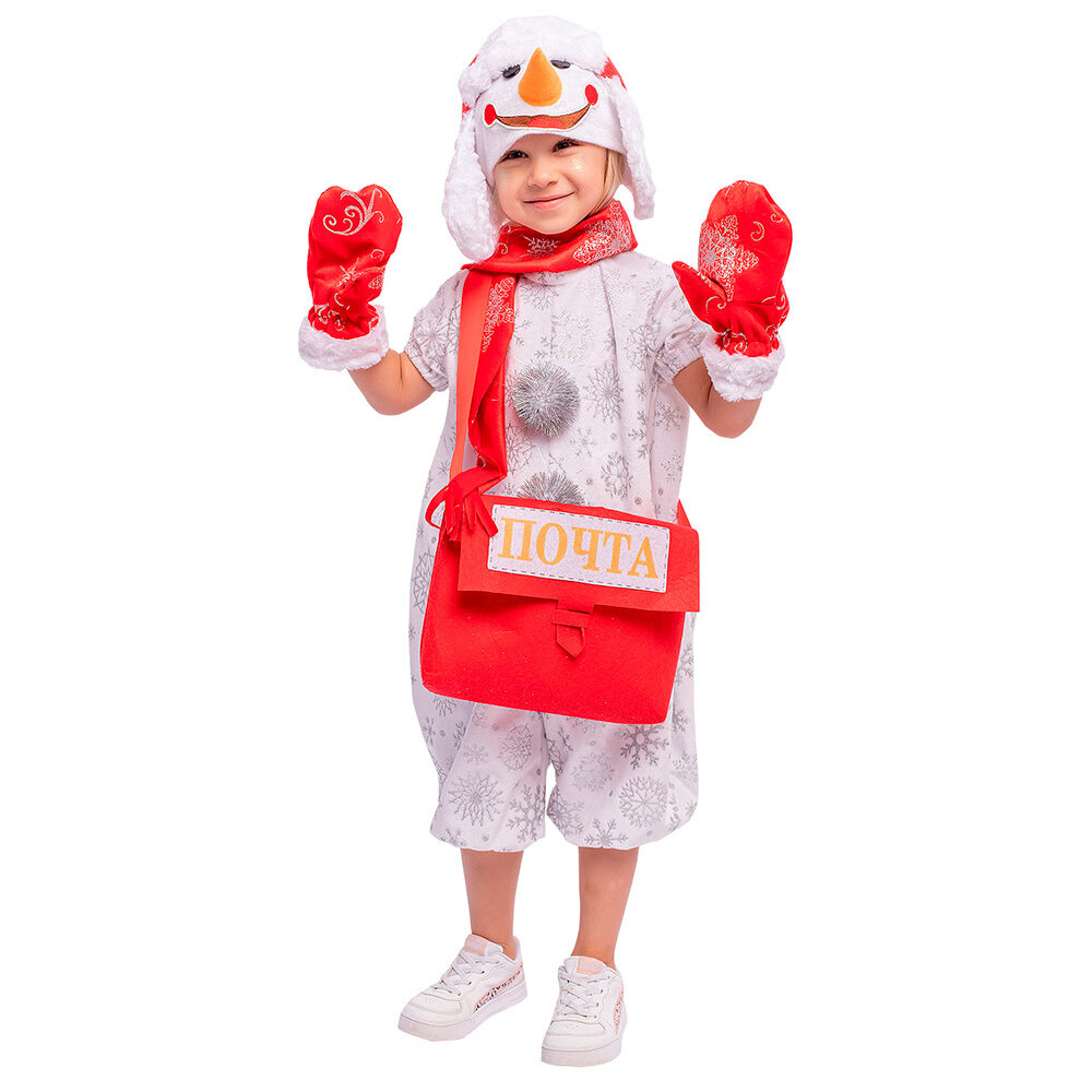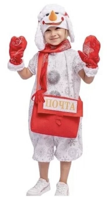 Карнавальный костюм Пуговка "Снеговик Гоша", размер 104-52, с почтовой сумкой (971 к-22-26)