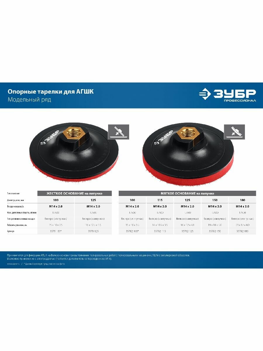 Тарелка опорная для УШМ под АГШК ЗУБР d 100 мм, М14, на липучке, пластиковая, Профессионал