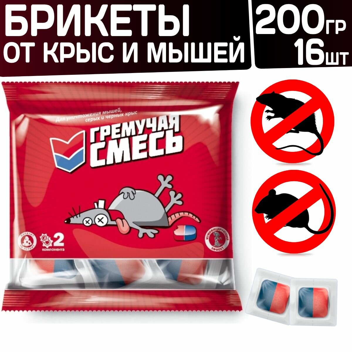 Гремучая смесь, приманка для уничтожения мышей и крыс, микс тесто-брикеты, 200 г 3 шт