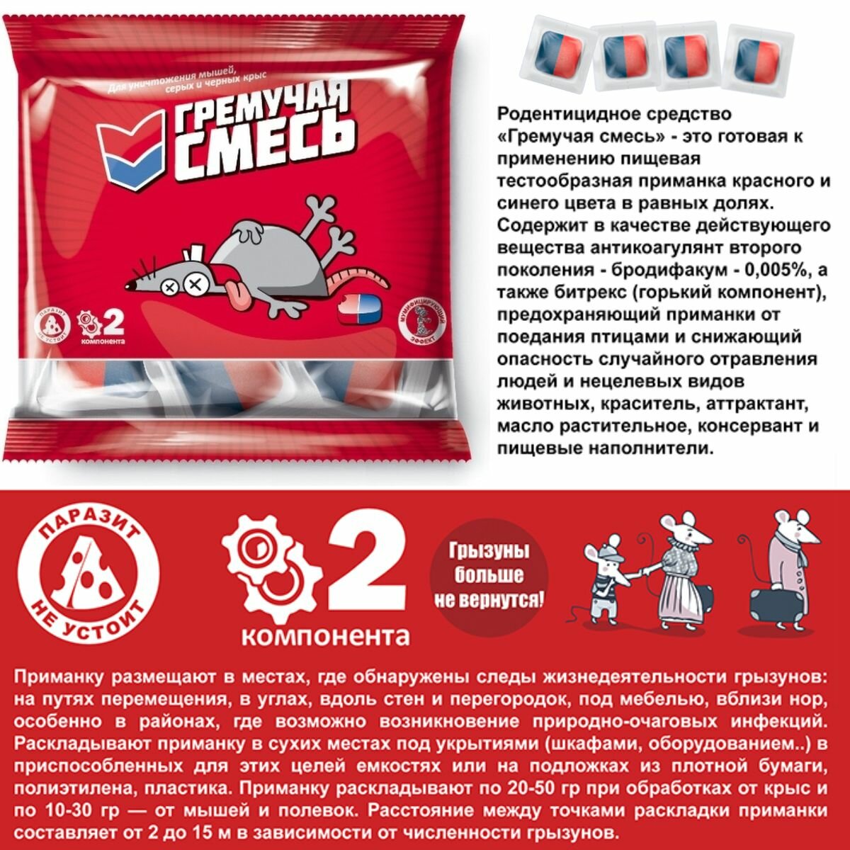 Приманка для уничтожения мышей и крыс Гремучая смесь, микс тесто-брикеты, 3 шт. * 200 г