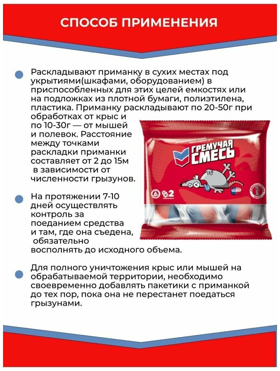 СохранитьПриманка для уничтожения мышей и крыс Гремучая смесь, микс тесто-брикеты, 5 шт. * 200 г интересное: