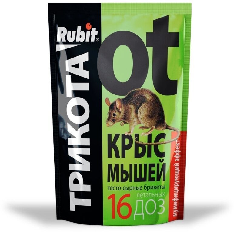 Средство против грызунов крыс и мышей Rubit ТриКота тесто-сырные брикеты мумифицирующий эффект 16 доз 150г