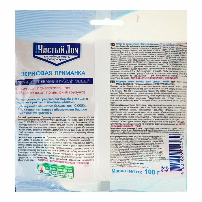 Средство от крыс и мышей Чистый дом зерновая приманка 100 г интересное: