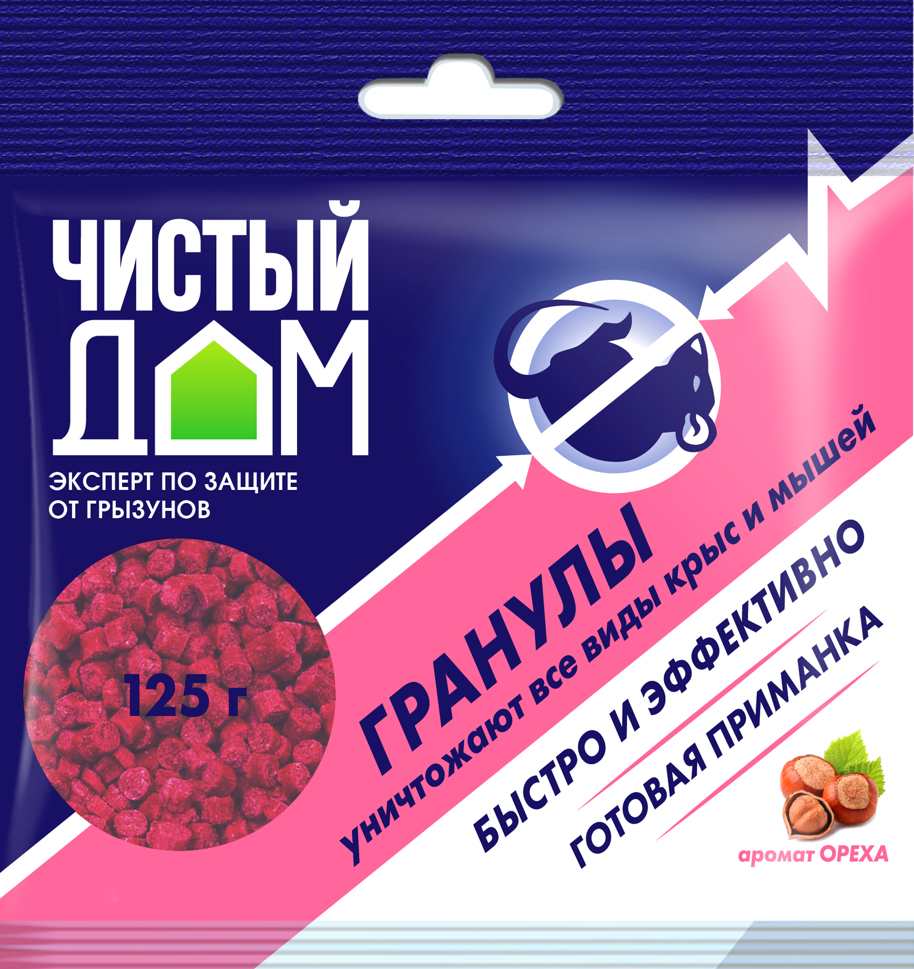 Родентицид Чистый Дом, от крыс и мышей, аромат ореха, гранулы, 125 г