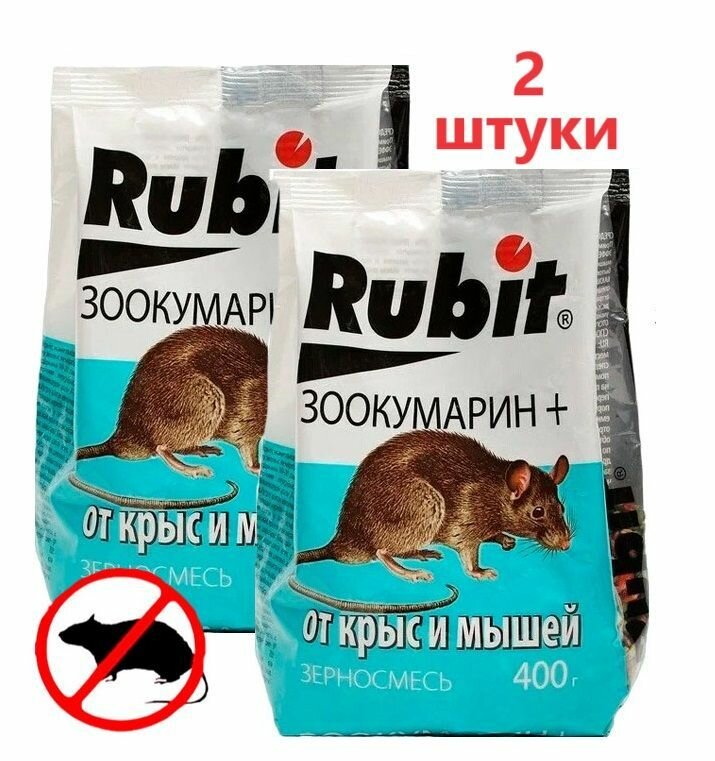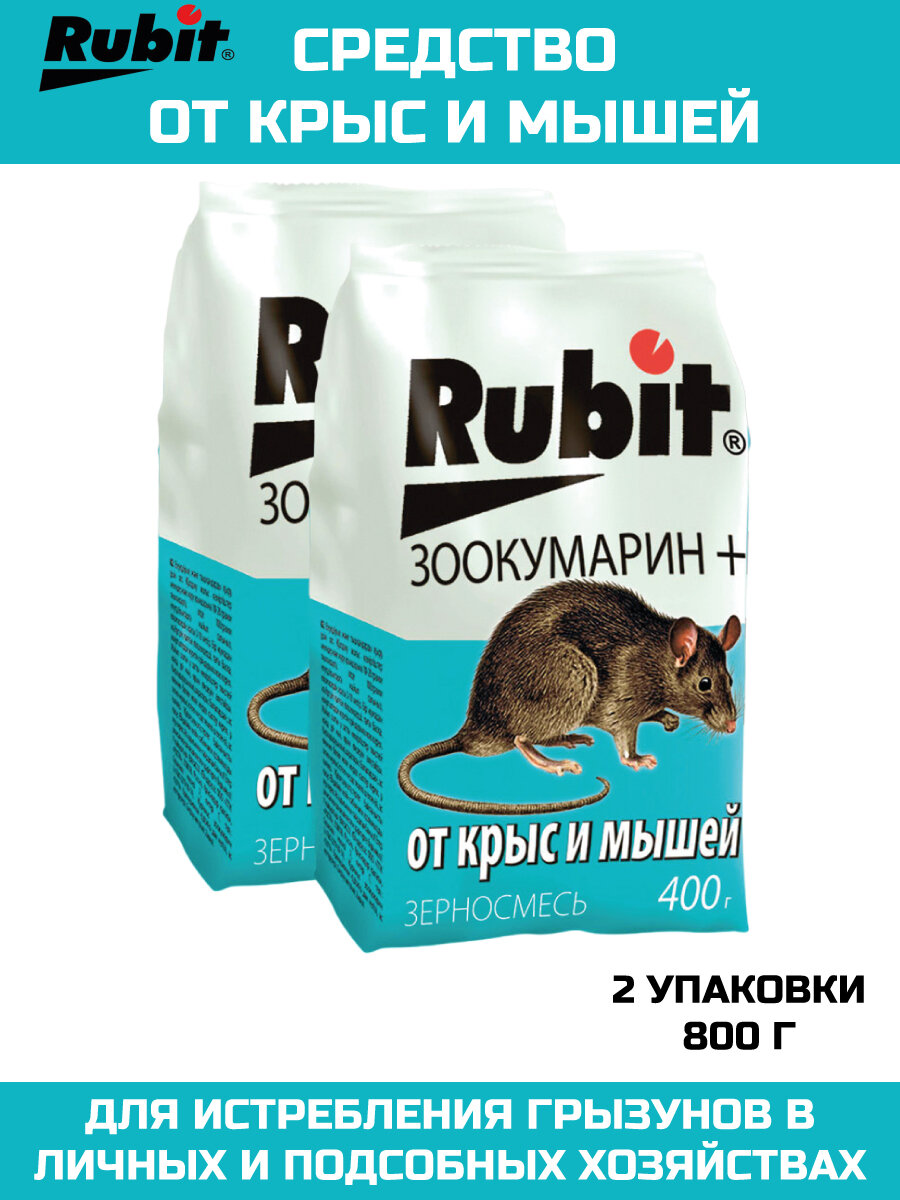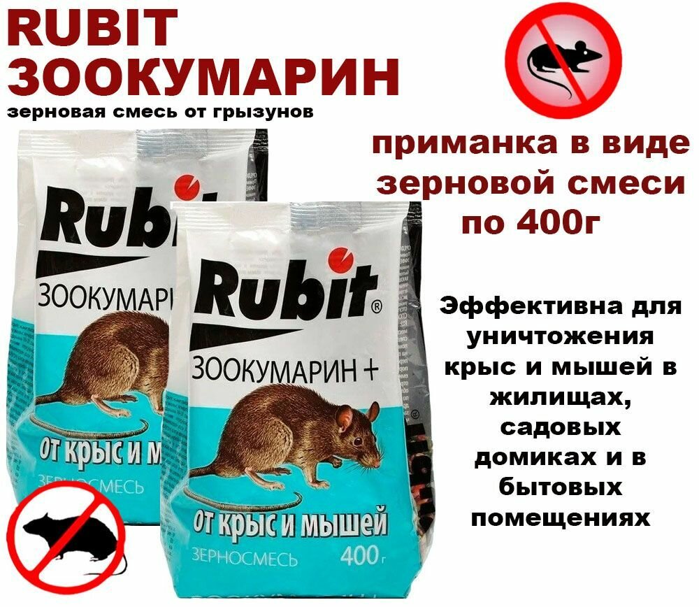Зерновая смесь от крыс и мышей, "Rubit" Зоокумарин+, 400 Г(2 шт.)