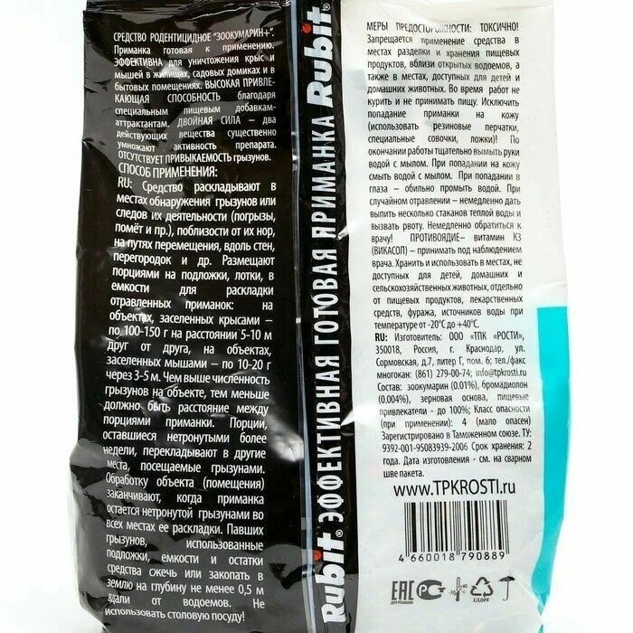 Зерновая смесь от крыс и мышей, "Rubit" Зоокумарин+, 400 Г интересное: