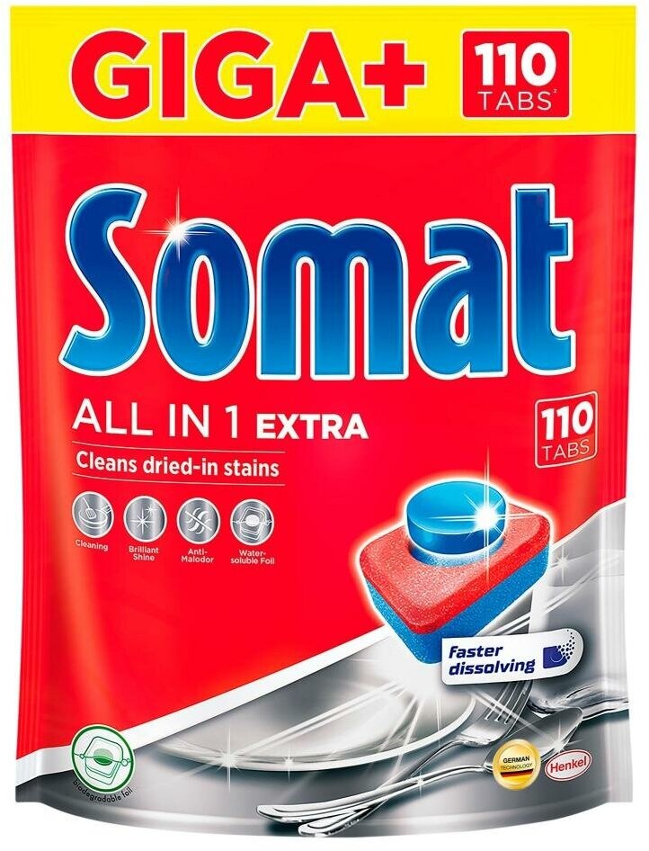 Таблетки для посудомоечной машины Somat All in 1 Extra, 110 шт., 2 кг, дой-пак