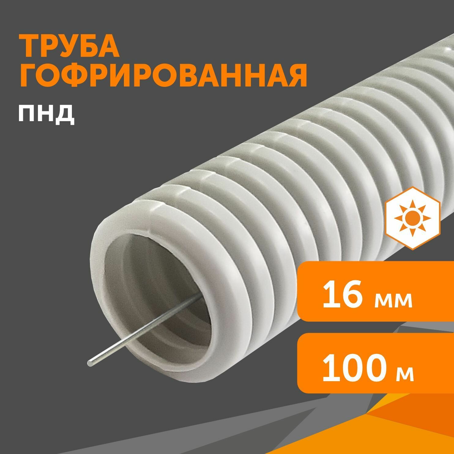 Труба гофрированная серая ПНД лёгкая 350 Н безгалогенная (HF), стойкая к ультрафиолету, с/з d16 мм, 100м