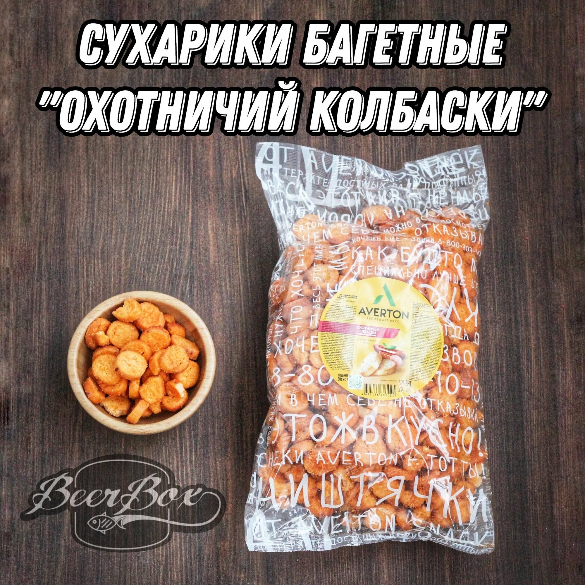 СохранитьСухари пшеничные багетные со вкусом Охотничьи колбаски 1 кг Averton snack интересное: