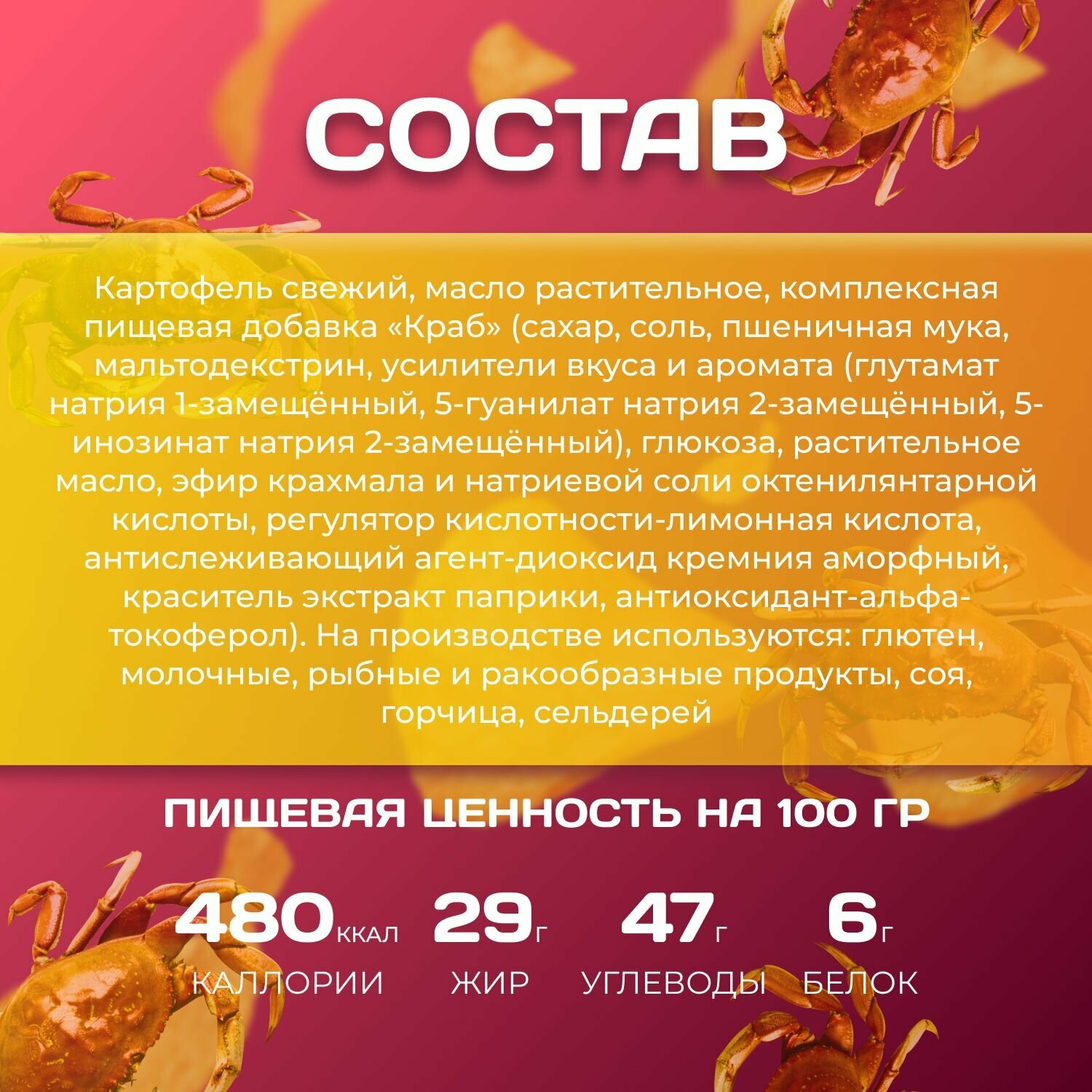 | Вкус | краб / паприка / сметана / соль / сыр |