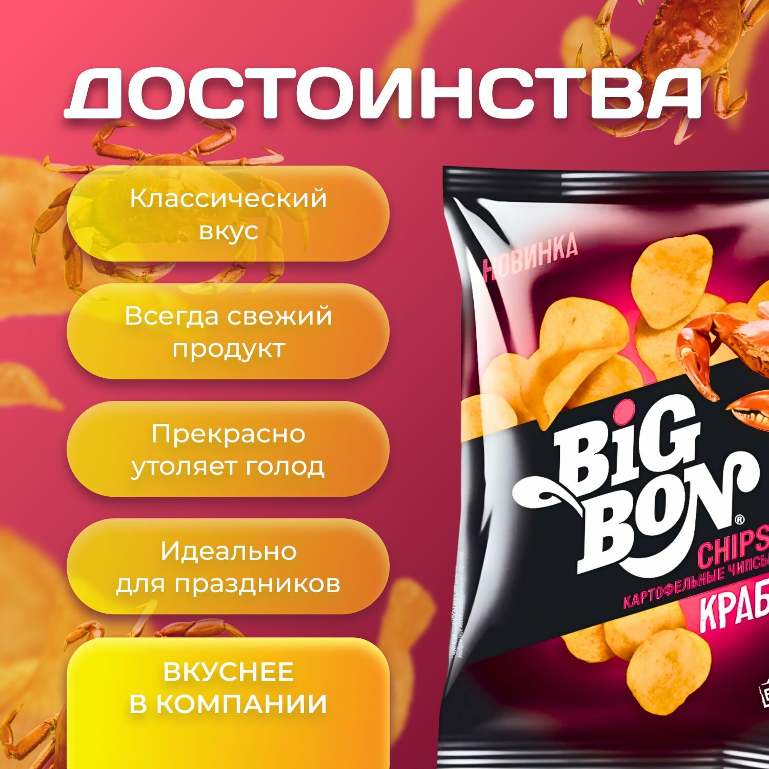 СохранитьКартофельные чипсы Big Bon "Краб" 75 гр. 12 шт. Биг Бон интересное: