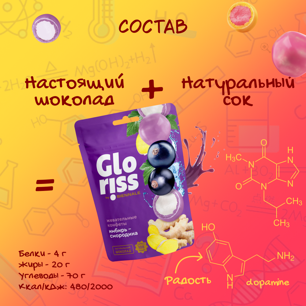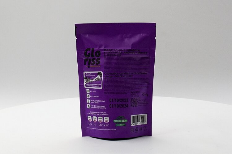 Купить Жевательные конфеты в шоколаде Gloriss имбирь-черная смородина 75 гр