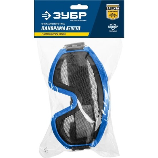 ЗУБР панорама сетка, закрытого типа, экран из стальной мелкоячеистой сетки, защитные очки, Профессионал (110234)