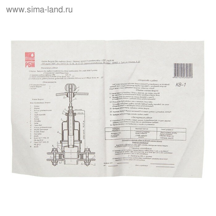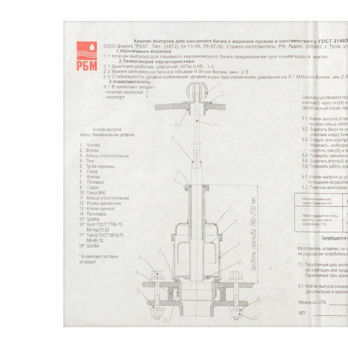 Клапан сливной для бачка унитаза "РБМ" КВ-1.1 4389992 интересное:
