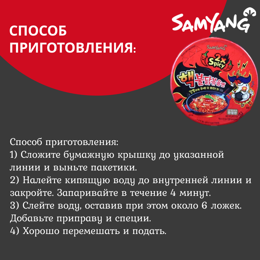 Корейская лапша быстрого приготовления SAMYANG 2X Spicy очень острая, со вкусом курицы 105гр