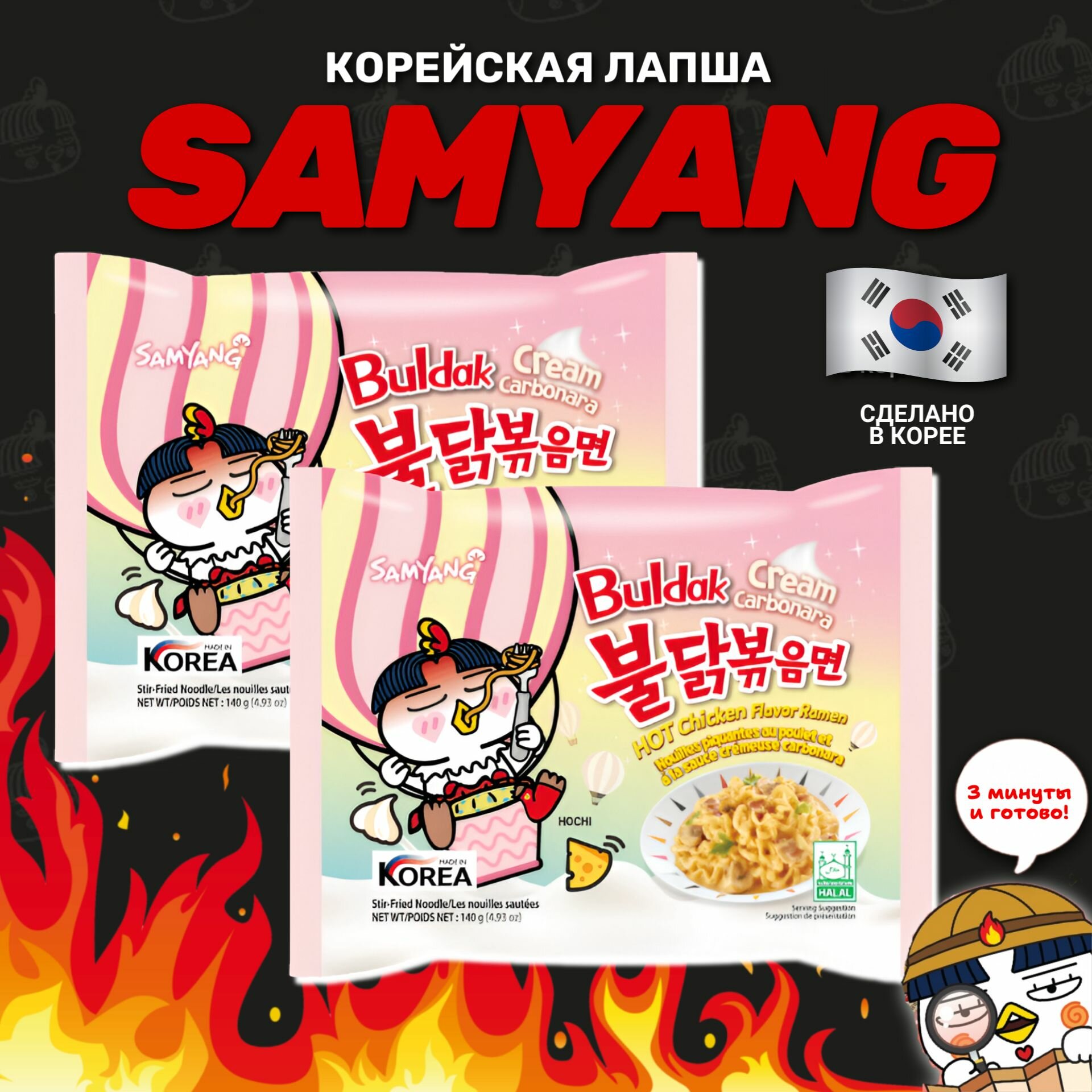 Корейская лапша быстрого приготовления SAMYANG Buldak Крем карбонара и Карбонара