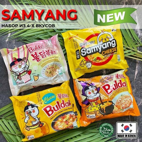 Корейская лапша быстрого приготовления SAMYANG Тушеная курица, Сыр, Острая с курицей, 2х спайси набор 4 шт/Острая лапша