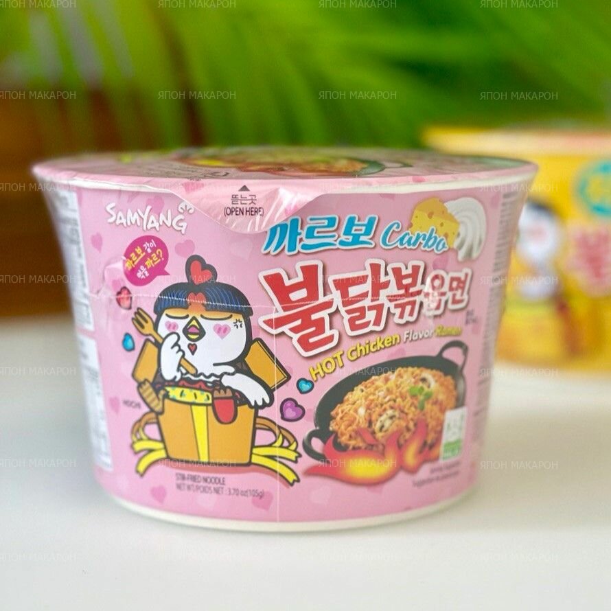 Корейская лапша быстрого приготовления SAMYANG в стакане Карбонара и Сыр
