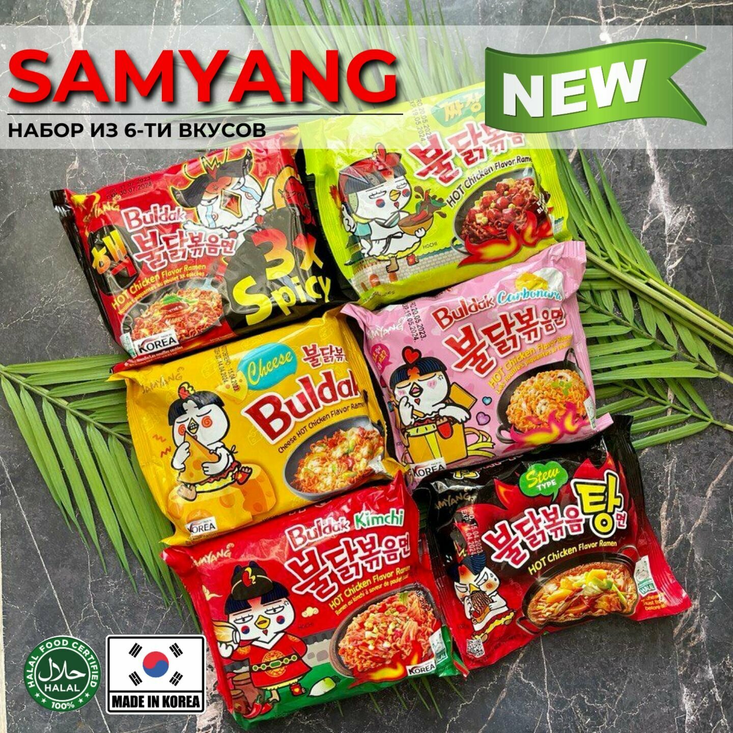 Корейская лапша быстрого приготовления SAMYANG 6 вкусов (2x spicy, Сыр, Крем карбонара, Тушеная курица, Острая с курицей, Хабанеро)