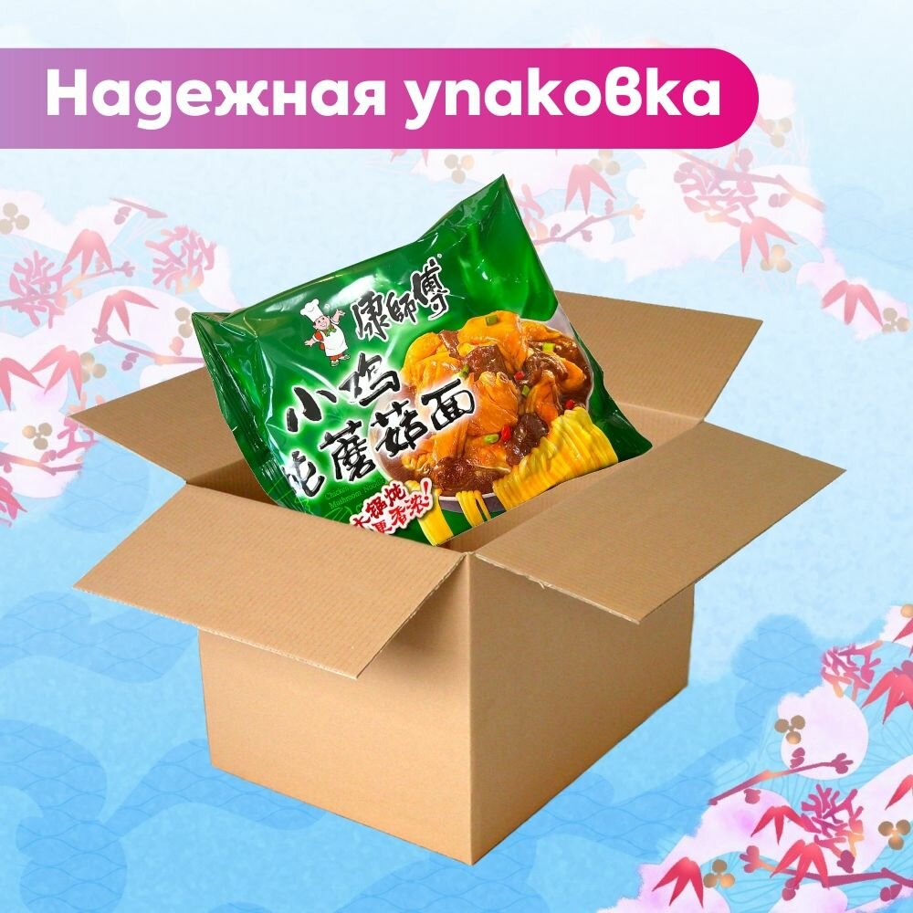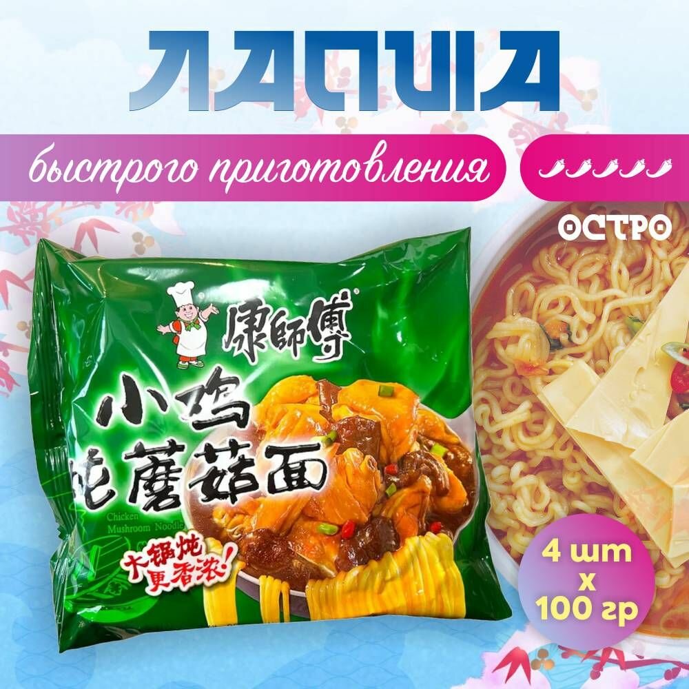 Купить Китайская лапша быстрого приготовления с курицей и грибами упаковка 4 штуки / зеленая