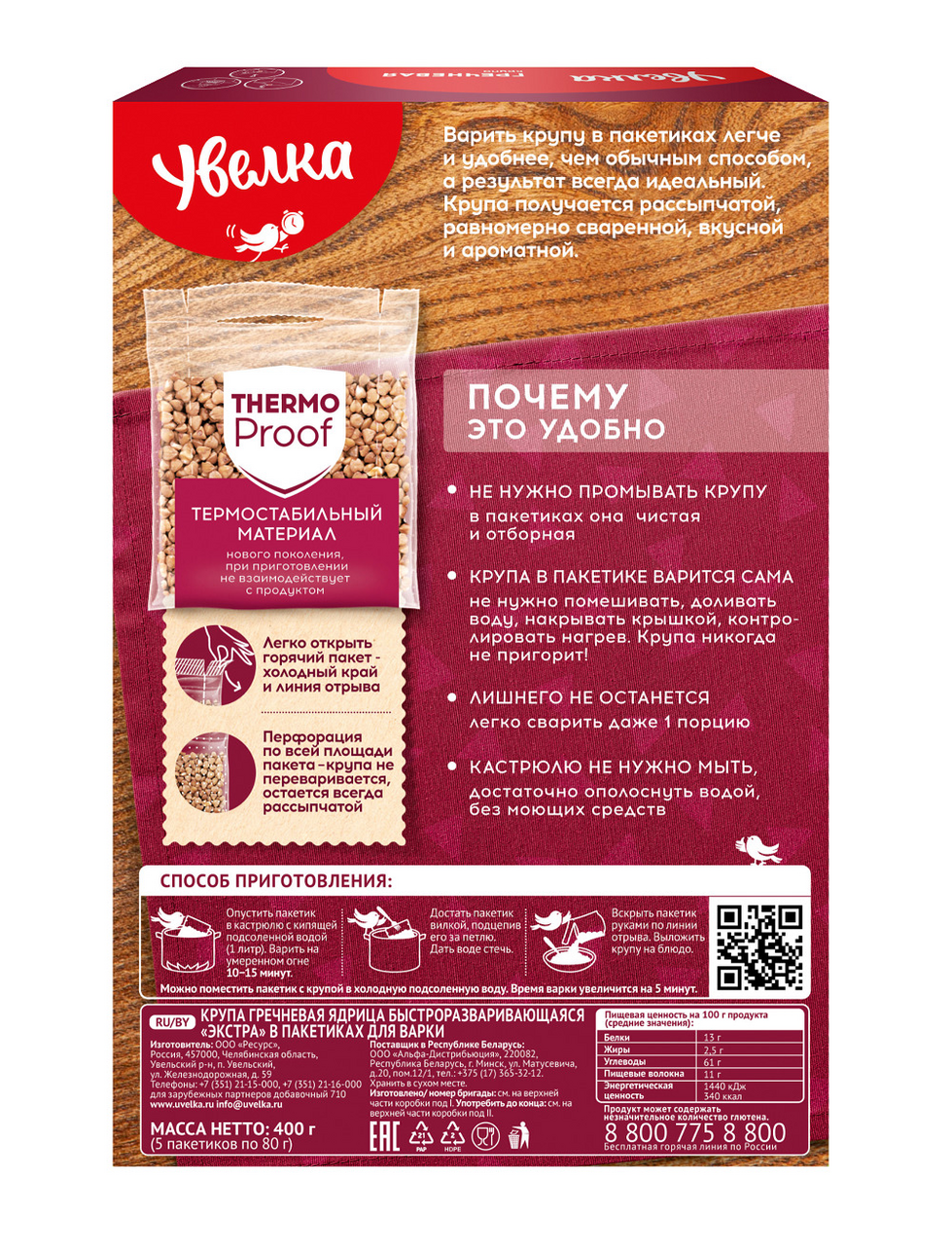 Гречневая крупа "Увелка" ядрица в варочных пакетах отборная 400 г интересное: