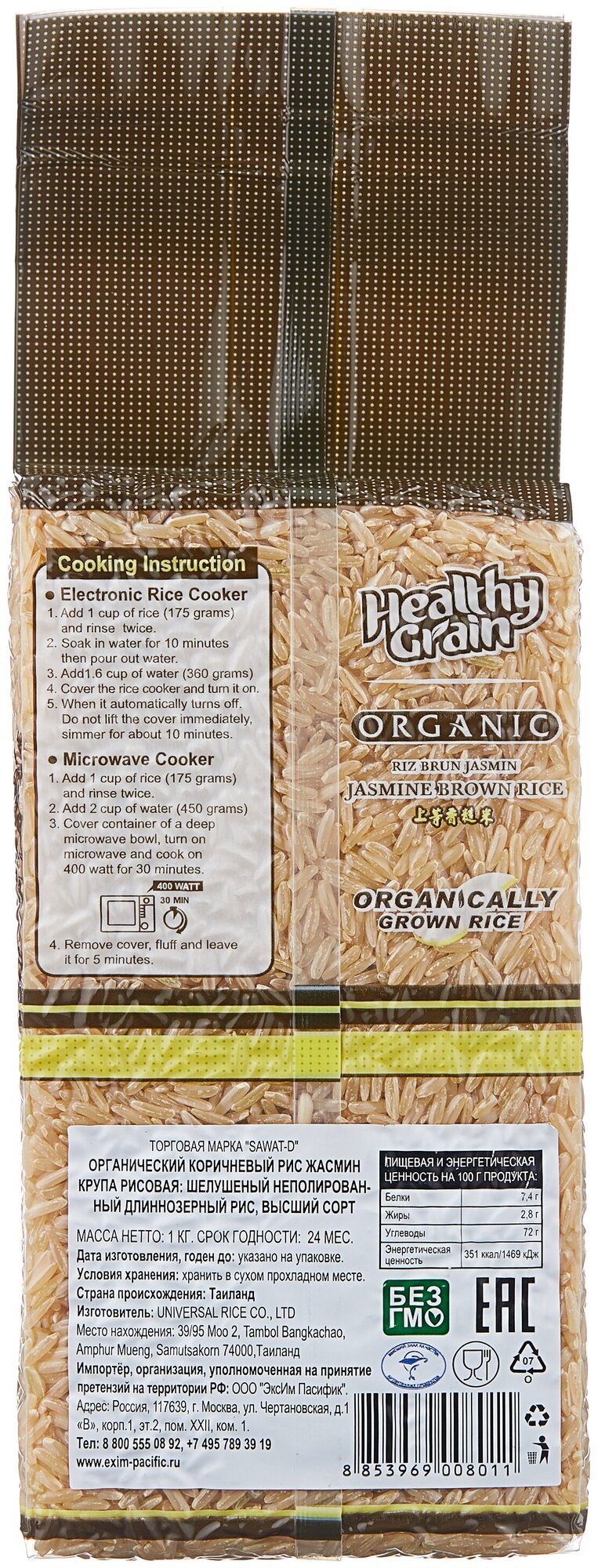 Рис Sawat-D Organic Жасмин тайский коричневый 1 кг интересное: