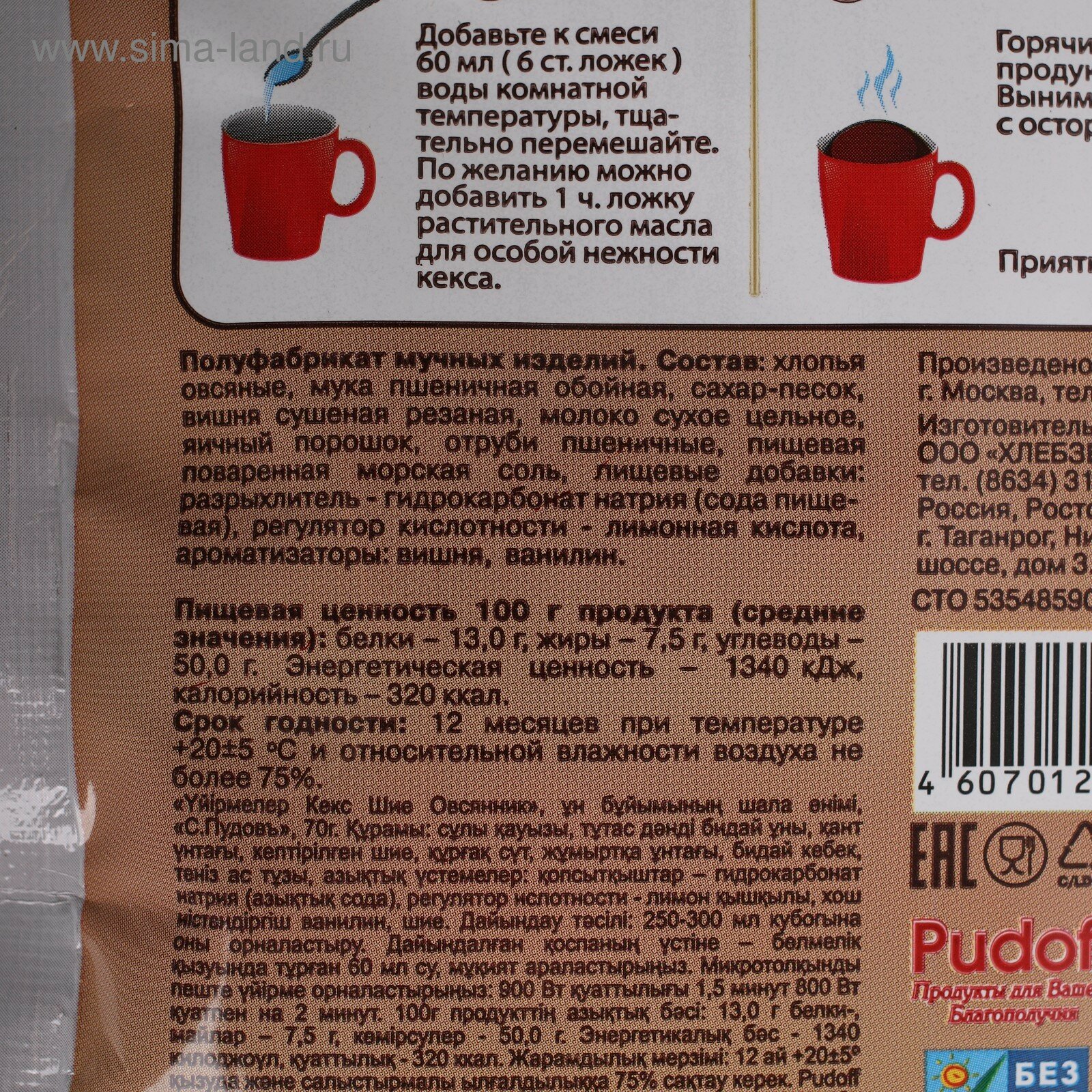 Мучная смесь С.Пудовъ кекс в кружке, овсянник с вишней, 70 г интересное:
