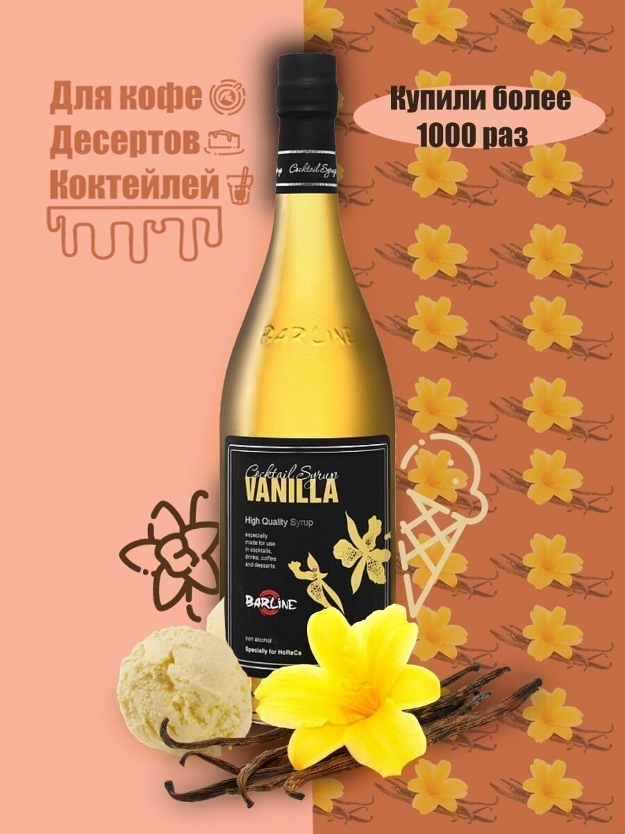 Barline Сироп Ваниль (Vanilla) 1л, для кофе, чая, коктейлей, напитков и десертов, ПЭТ , Барлайн
