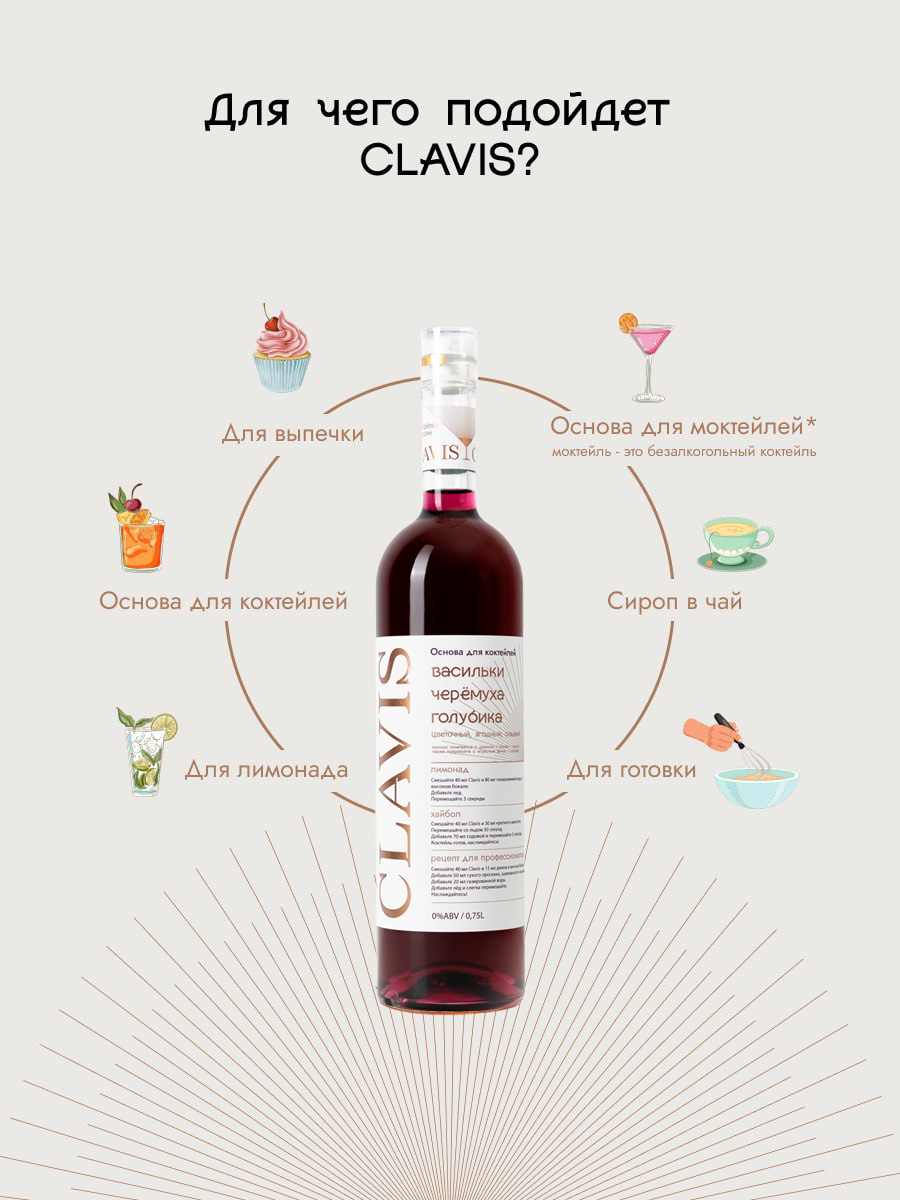 Купить Основа для 15 коктейлей Clavis Васильки, Черёмуха, Голубика 750 мл