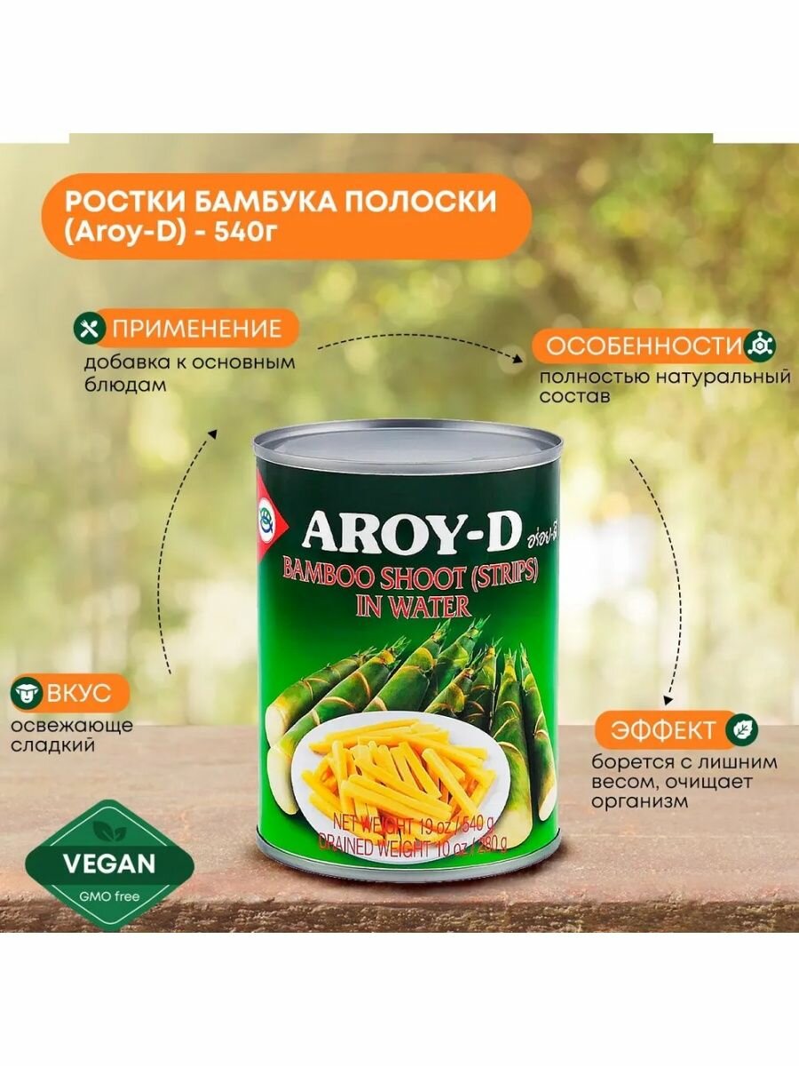 Овощные консервы Aroy-D Ростки бамбука, полоски, 540 г интересное: