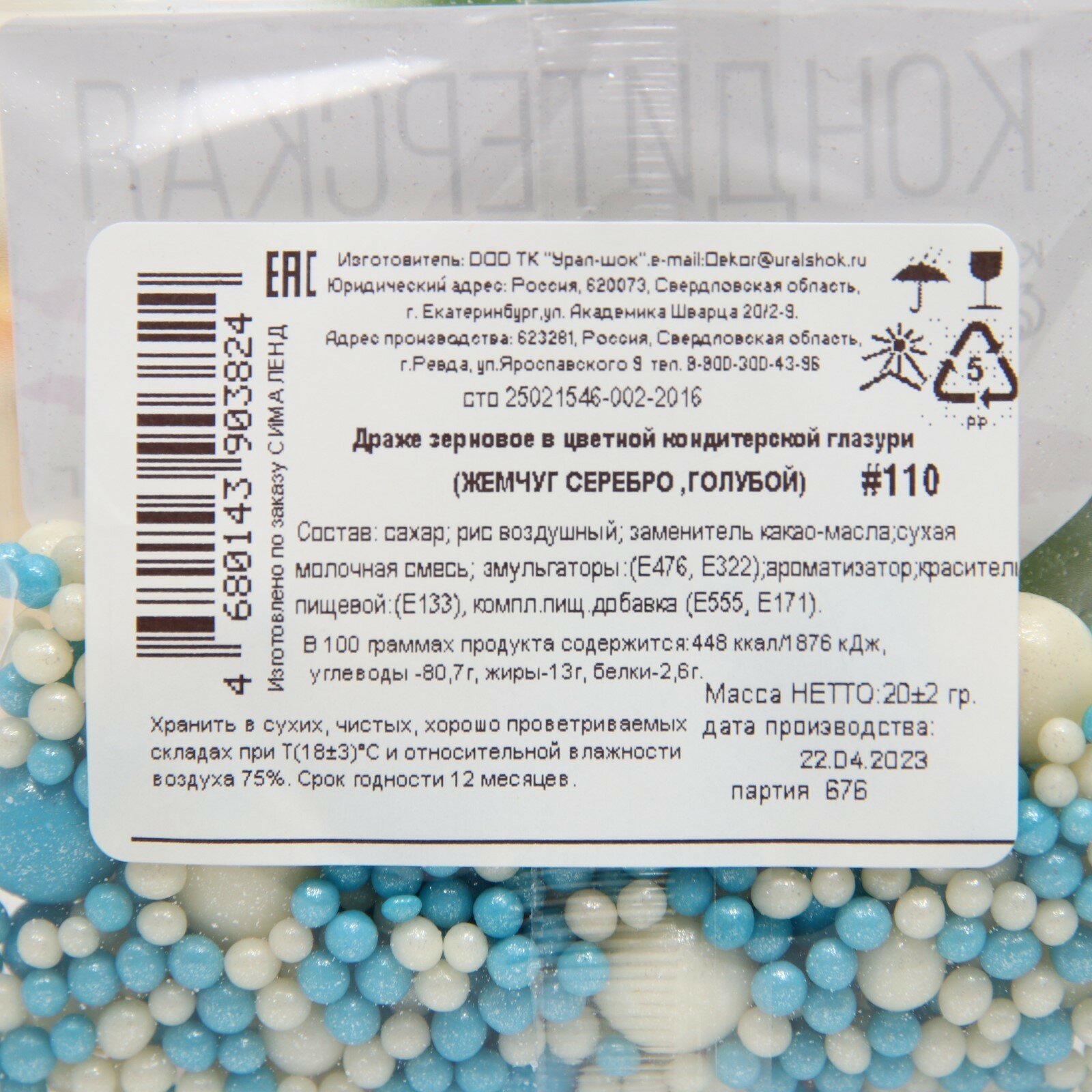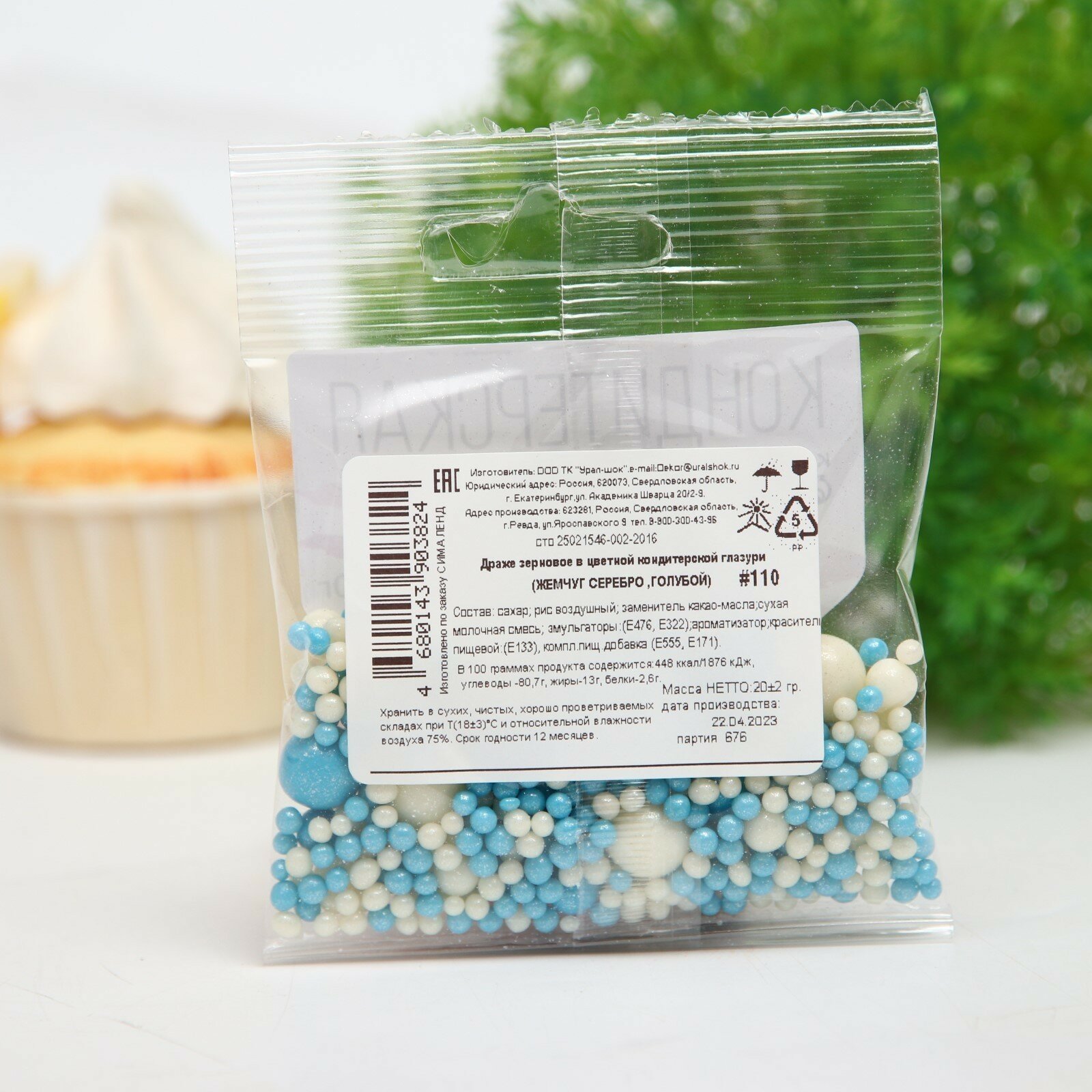 Купить Посыпка кондитерская "Жемчуг" голубой, серебро, 20 г