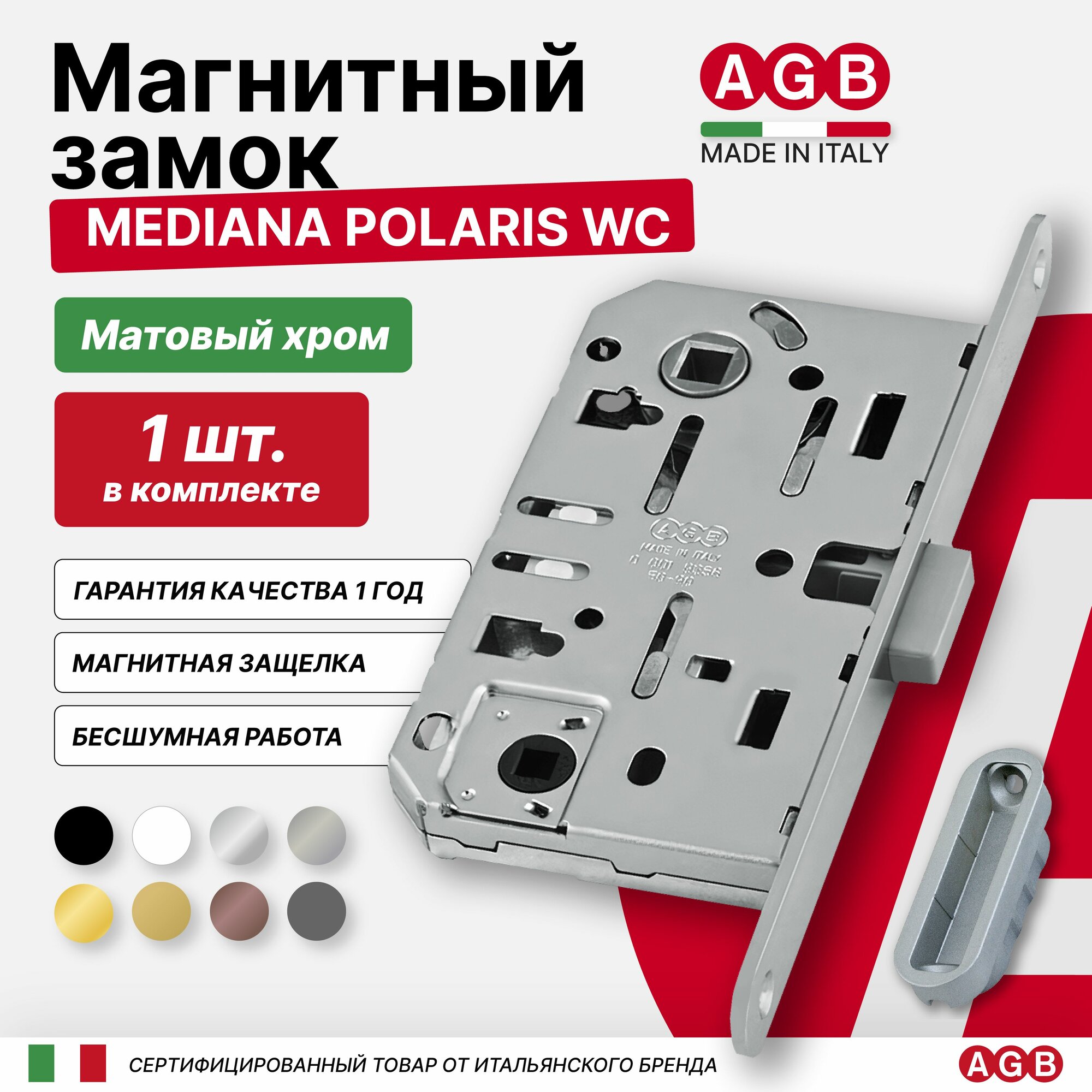 Купить Замок магнитный бесшумный AGB Mediana POLARIS B061025034 WC (с отв. планкой), матовый хром