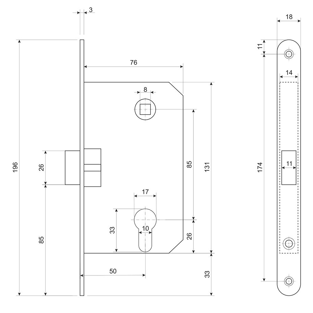 Замок врезной Apecs, 5300-P-CR, 18128, без ручки, цилиндровый, хром