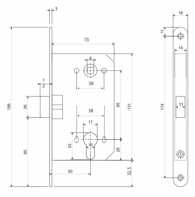 Замок врезной Apecs, 5300-P-GRF, 25328, без ручки, графит