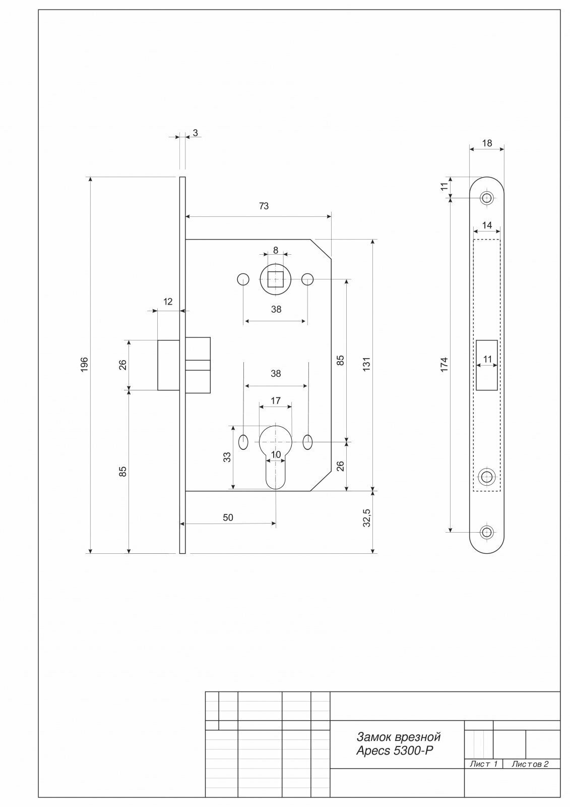Замок врезной Apecs, 5300-P-CR, 18128, без ручки, цилиндровый, хром