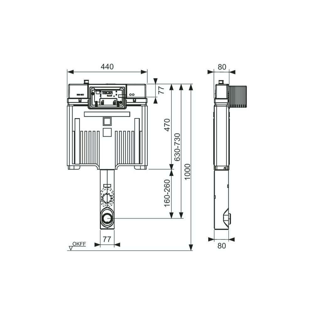 Сливной бачок TECEbox Octa II, 8 см, для напольного унитаза, с арматурной сеткой, установочная высота 1075 мм