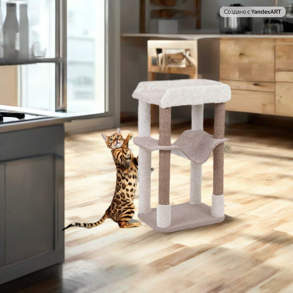 Когтеточка для кошек с гамаком и лежанками "Етк Зоо" КЛК 88, 880*520*400 мм, белый с коричневым ковролин, джут, мята