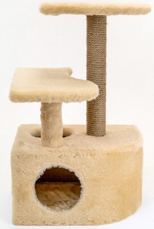 Когтеточка домик "PetTails" угловой со ступенькой 48 х 51 х 65 см бежевый