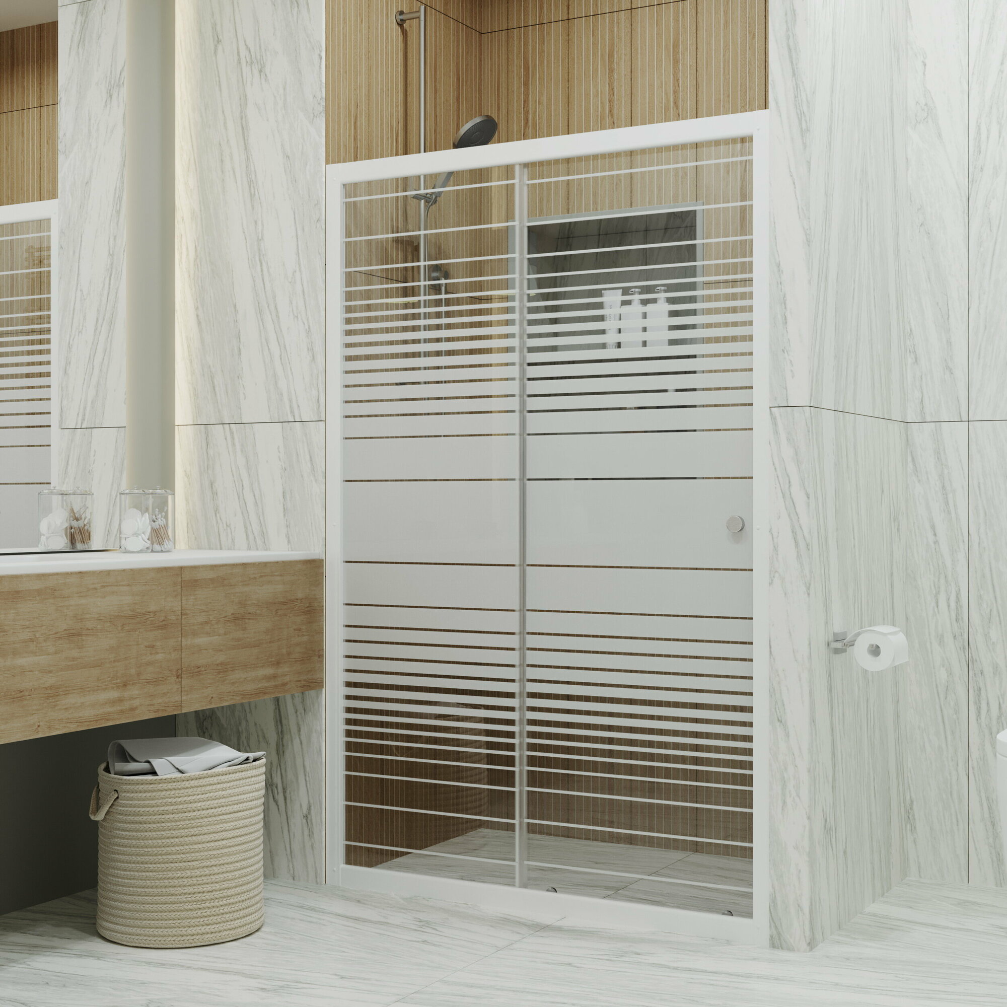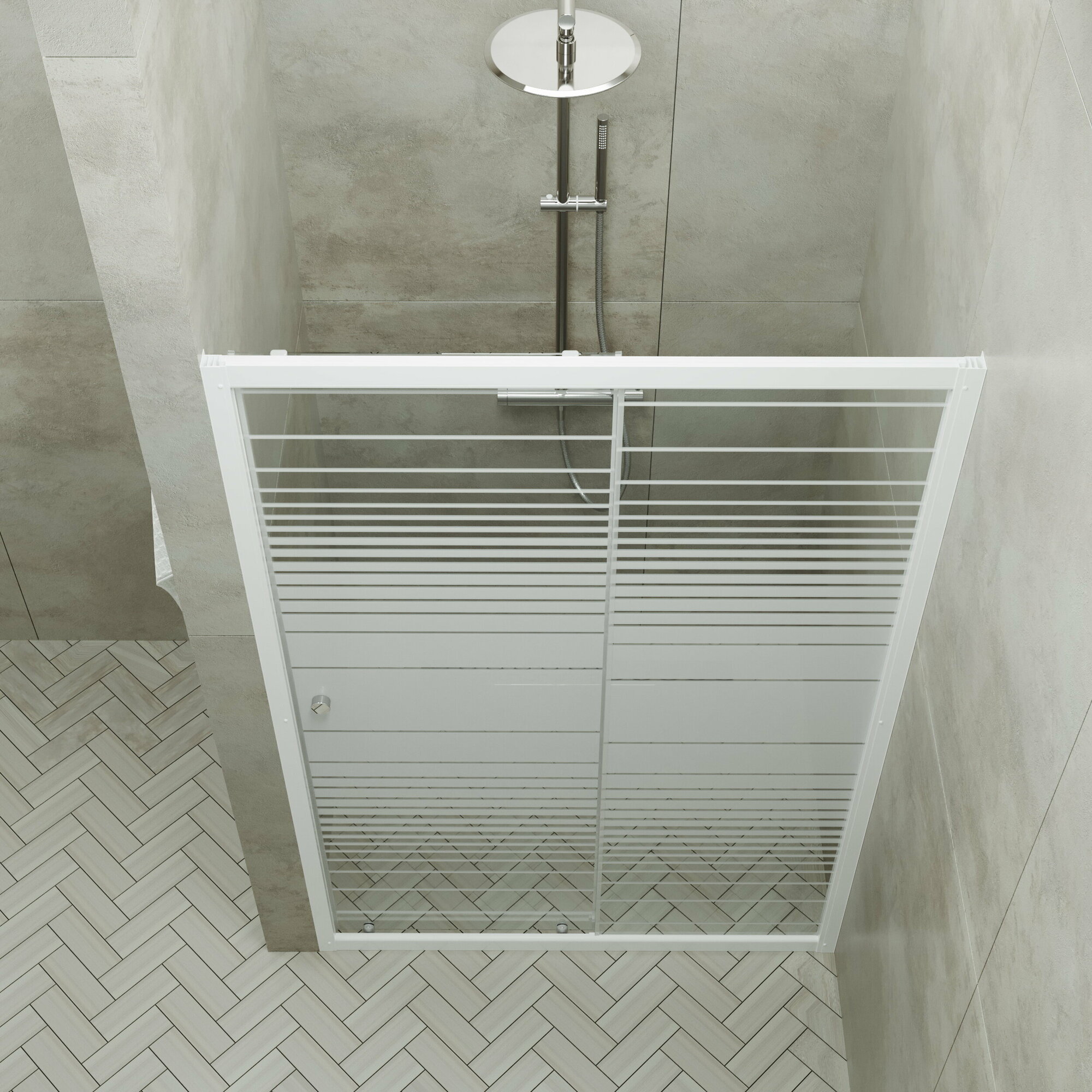 Душевая дверь, Triton, «Слайд» 100х185, цвет профиля белый, стекла рисунок - полосы, раздвижные