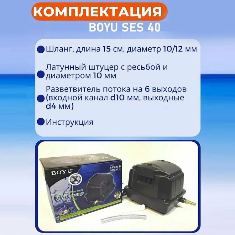 Компрессор для аквариума BOYU SES-40 бесшумный. Профессиональный мембранный компрессор для пруда или септика.