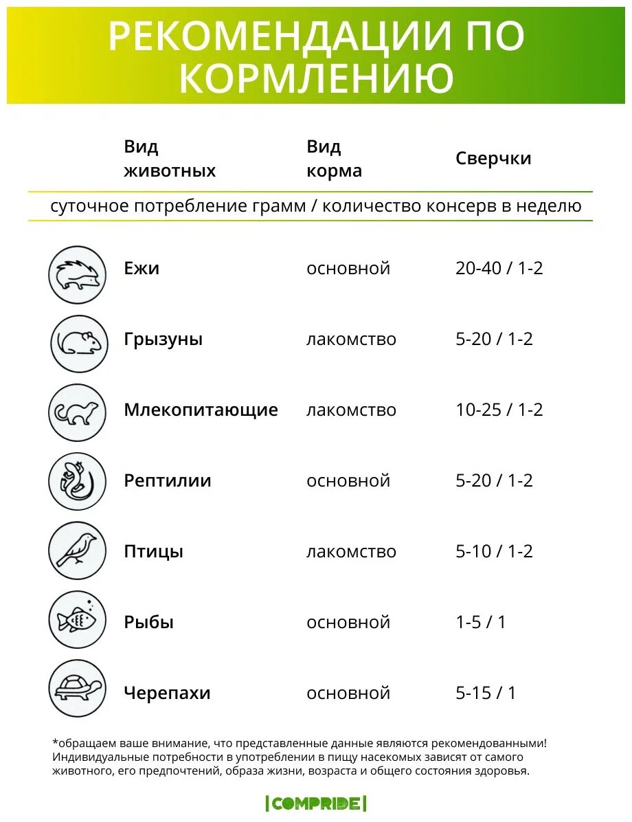 | Ингредиенты | Сверчок домовый ( Acheta domesticus) 100% |